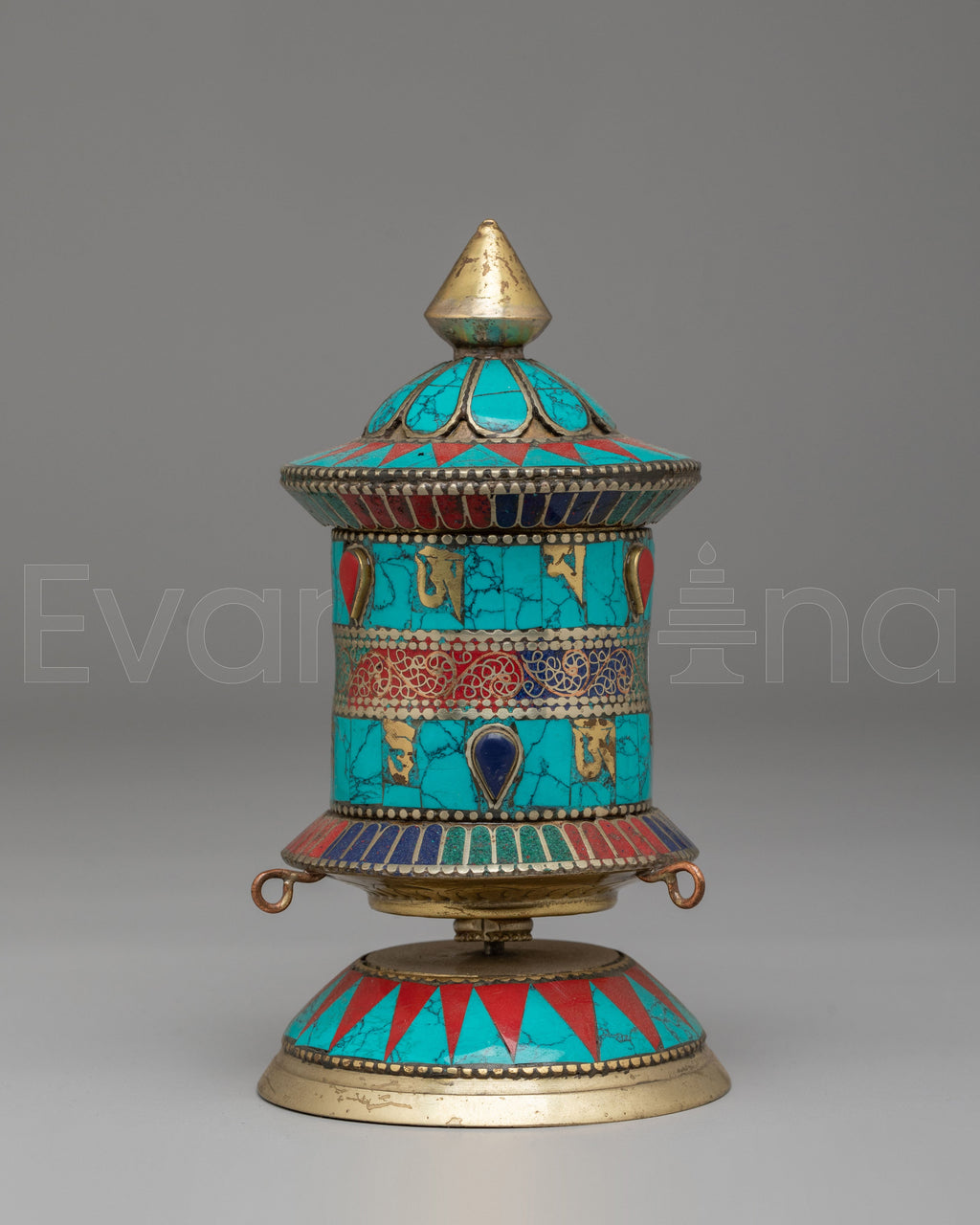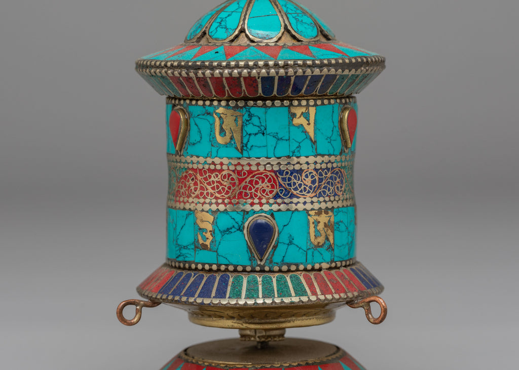This mantra wheel can be incorporated into daily meditation, prayer rituals, or mindfulness practices. It serves as a physical reminder of spiritual discipline and devotion. Suitable for Tibetan Buddhist practitioners, spiritual seekers, and collectors of Himalayan art, the piece may also be offered as a meaningful gift for religious occasions, house blessings, meditation milestones, or spiritual celebrations.