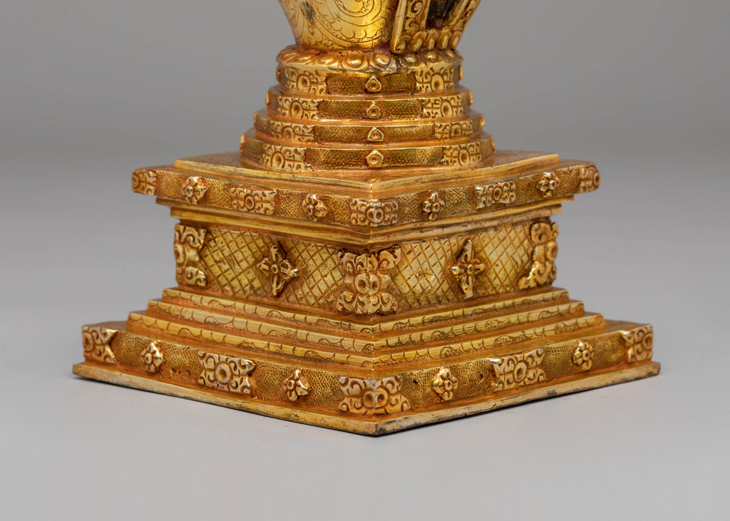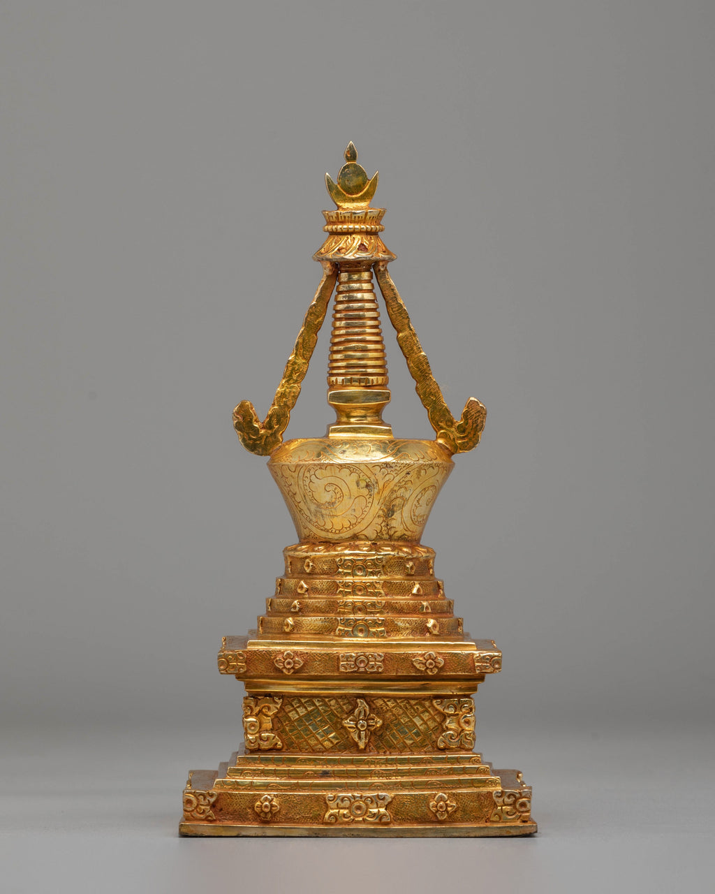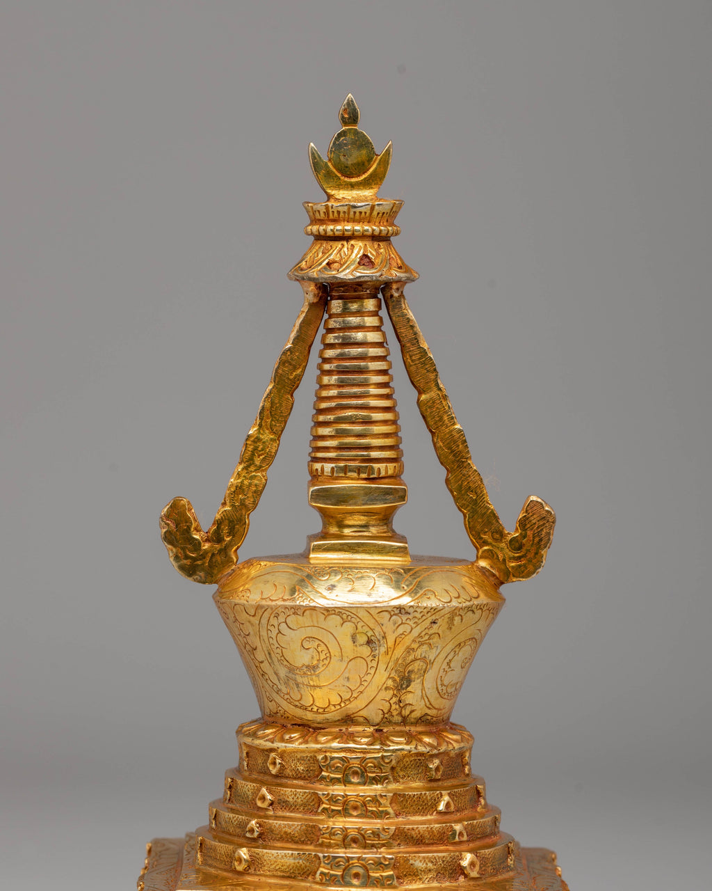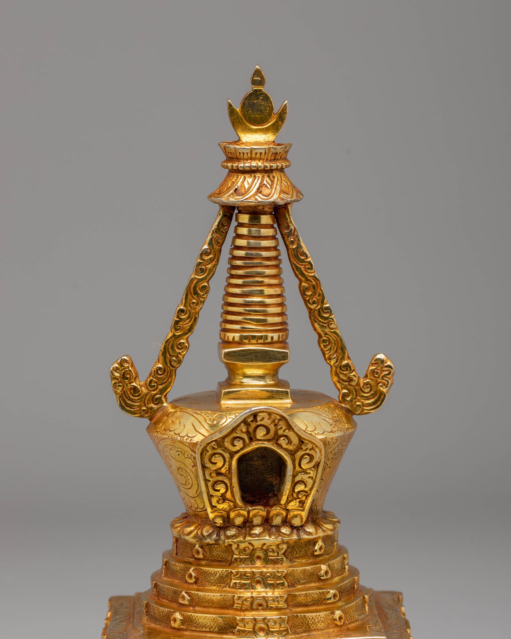 Sacred Gold-Plated Copper Stupa for Altar | Tibetan Buddhist Stupa Decor