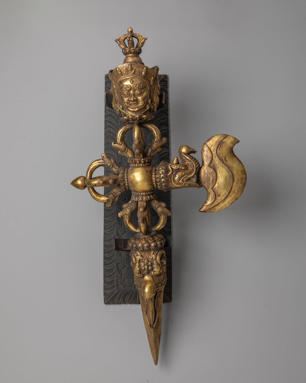 Ideal for Buddhist altars, meditation spaces, and ritual offerings, this gold-plated Tibetan Phurba is not only a functional tool but also a striking decorative piece. It serves as a symbol of strength, spiritual mastery, and the balance between wisdom and compassion. Whether used for rituals, prayers, or as a sacred art piece, this Tibetan copper phurba will enrich your spiritual practice and deepen your connection to the teachings of Buddhism.