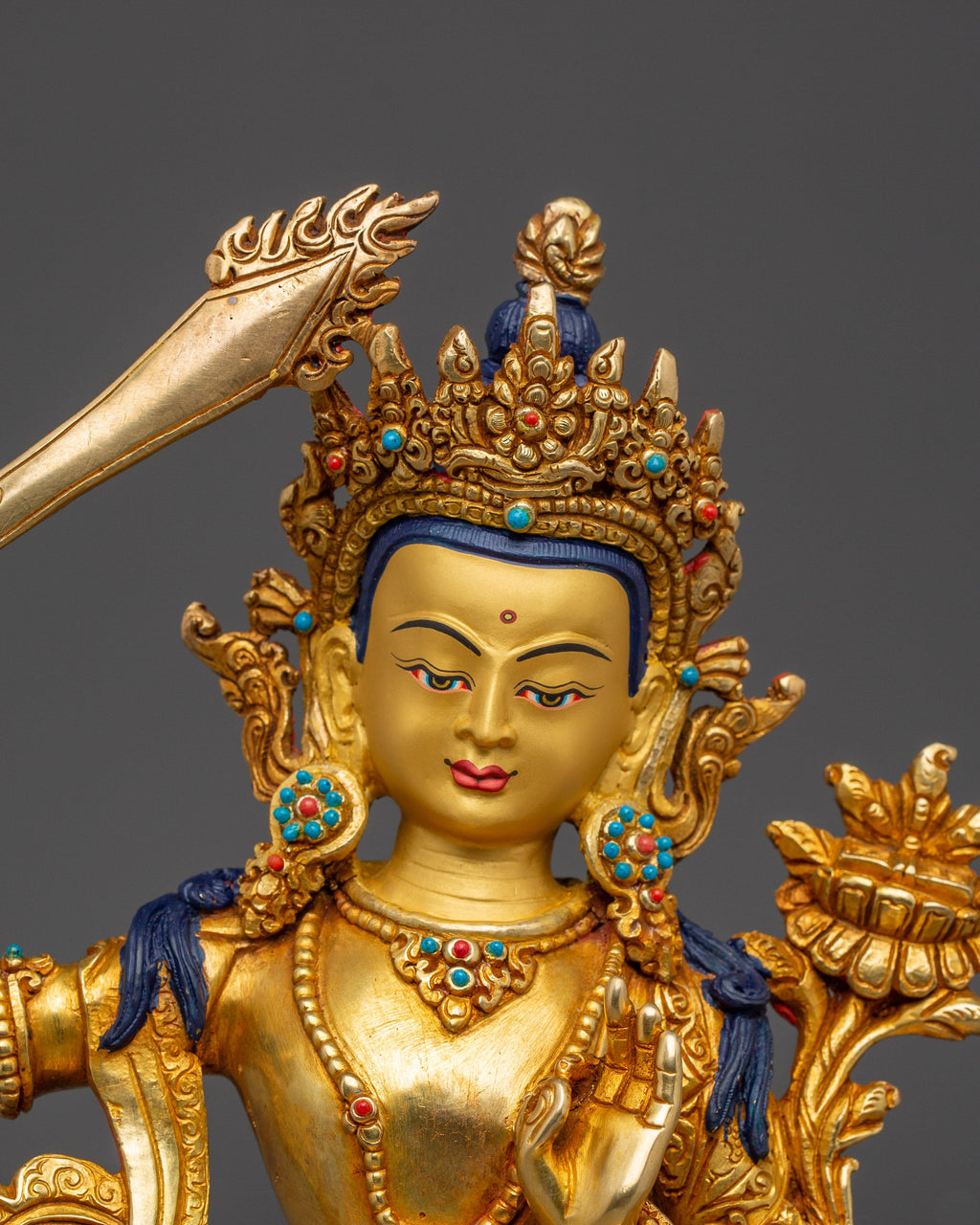Gold Gilded Manjushri Statue | Spiritual Wisdom and Meditation