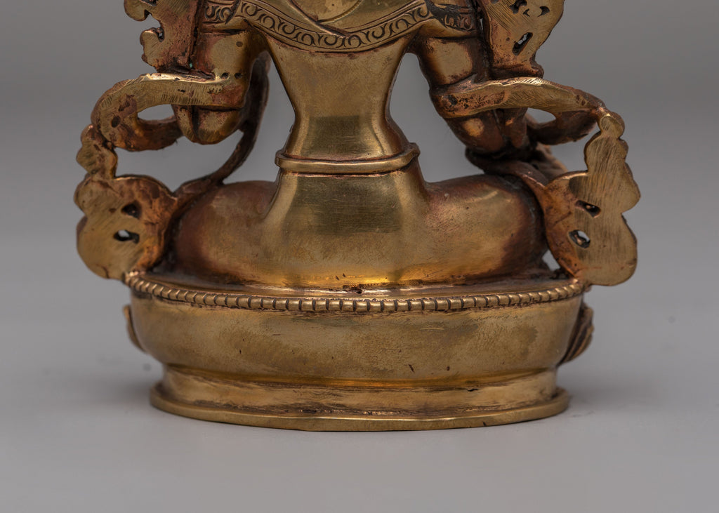 The copper body of the statue features intricate detailing that reflects Green Tara’s nurturing energy. Her peaceful yet strong expression captures her essence as a protector and guide, while the lotus flower she holds represents purity and enlightenment. Green Tara’s compassion extends to all sentient beings, offering wisdom and protection. The vibrant design of the statue and its spiritual symbolism make it an important item for those on a path to personal growth and enlightenment.