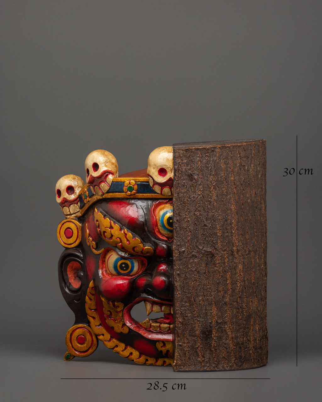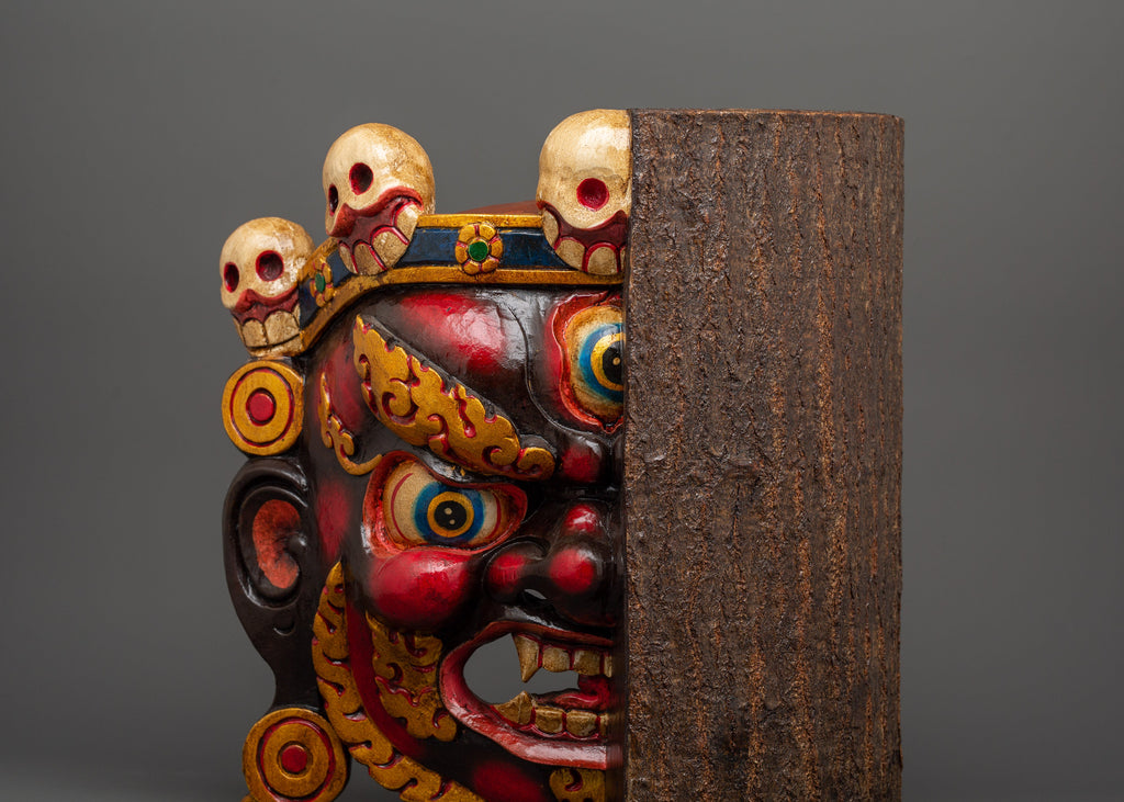 Tibetan Half Bhairav Wooden Mask | Fierce Guardian Deity for Home & Altar Decor