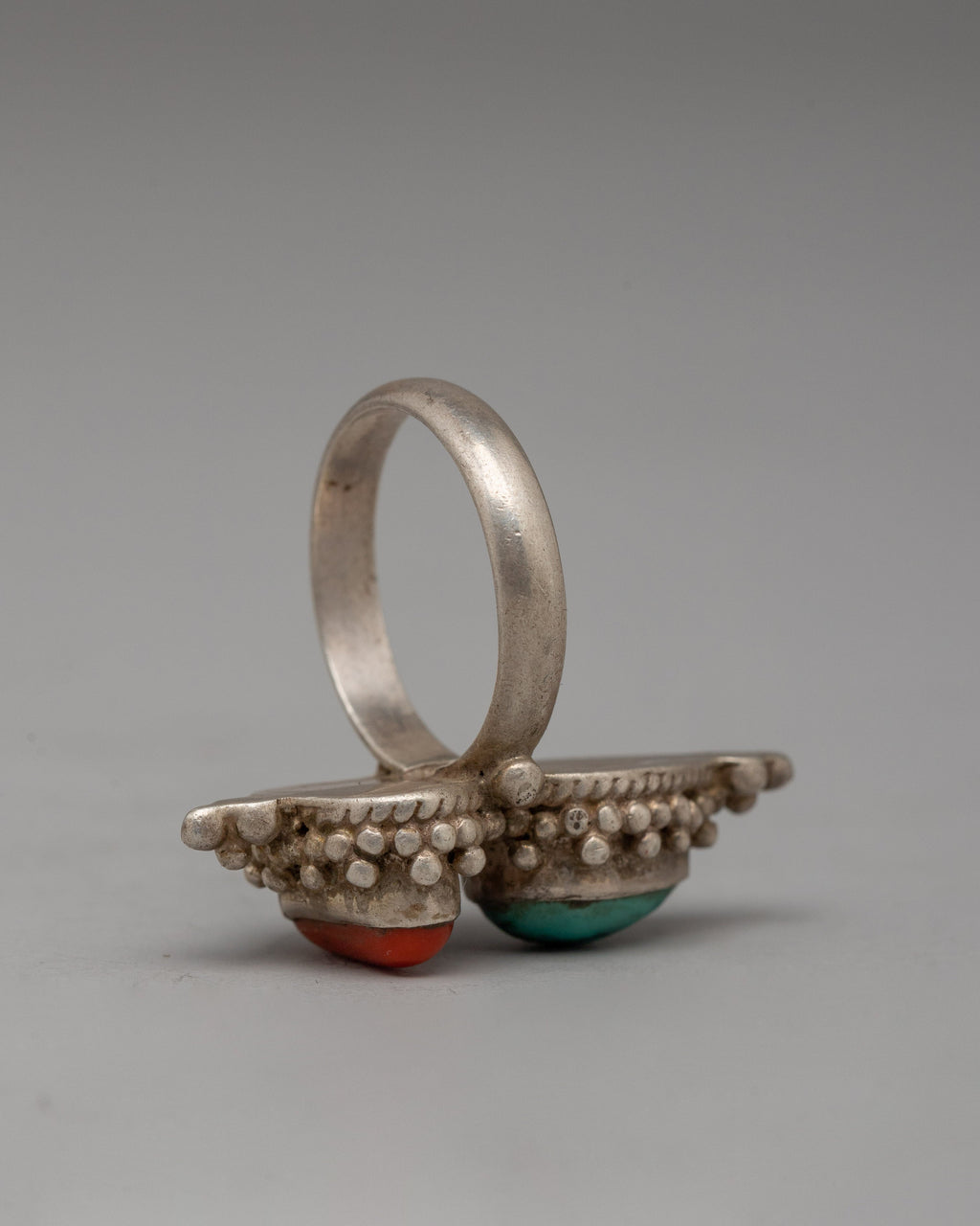 The stones featured in this 92.5 Silver Ring—original coral and original turquoise—are both rich in beauty and symbolism. Coral, with its deep red or vibrant orange hues, is often associated with vitality, protection, and the heart chakra, believed to promote emotional healing and inner peace. Turquoise, on the other hand, is known for its calming blue-green tones and has been revered for centuries as a stone of wisdom, tranquility, and spiritual growth. It is said to bring balance, harmony, and healing energy to the wearer, offering a sense of serenity. Together, these stones create a harmonious combination, blending strength, beauty, and spiritual significance into one stunning piece of jewelry.