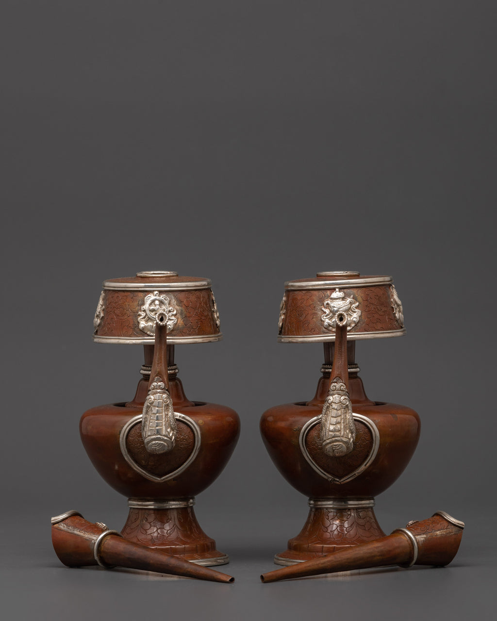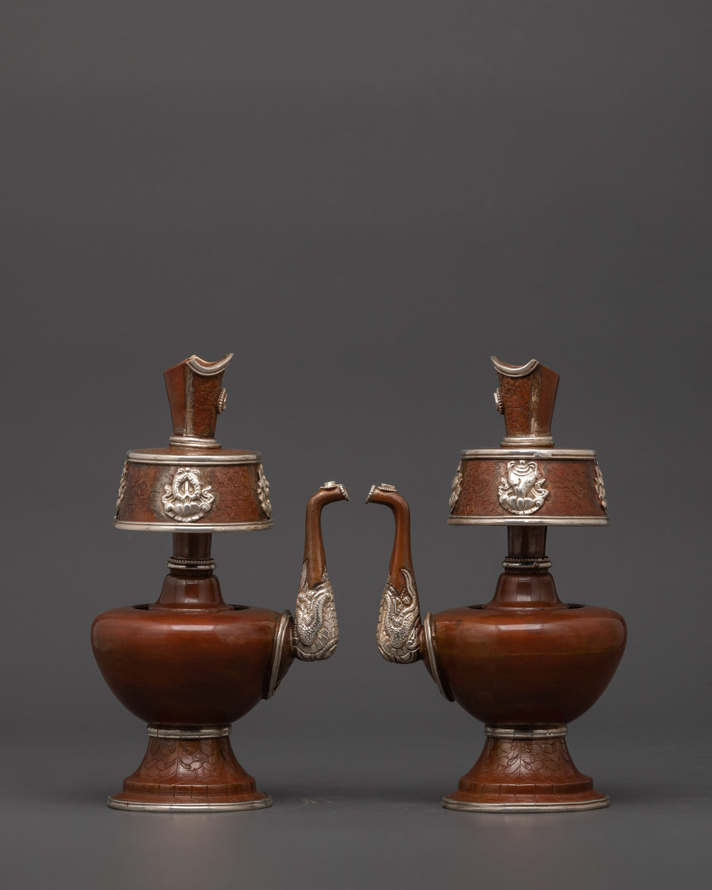 Tibetan Oxidized Copper Bhumba Set | Sacred Water Offering Vessels