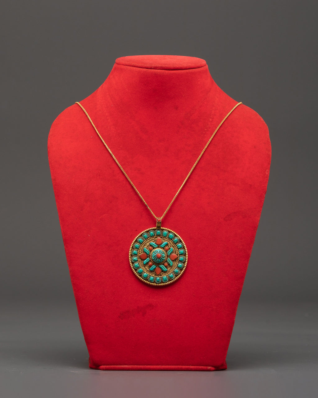 Handcrafted Tibetan Pendant Locket with Semi-Precious Stones for Spiritual Style