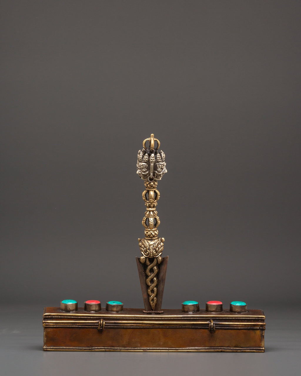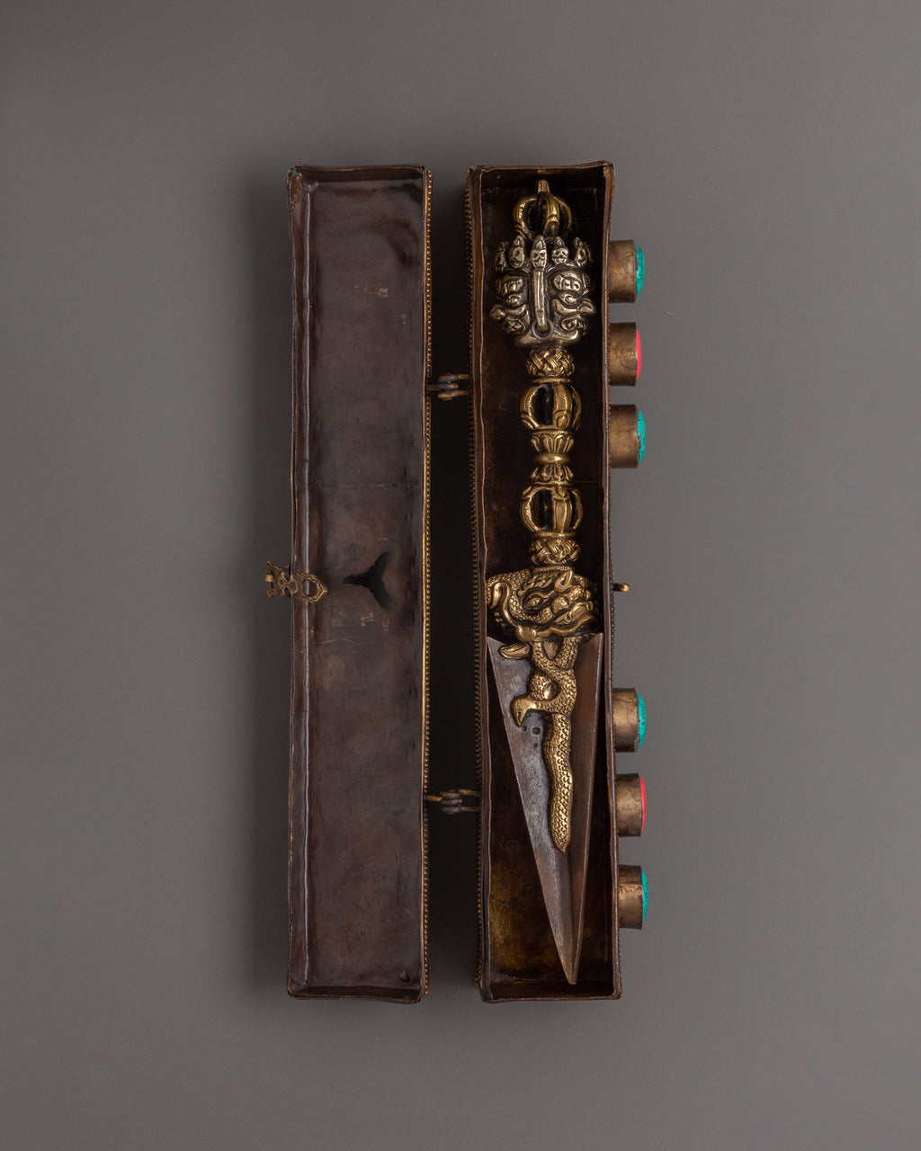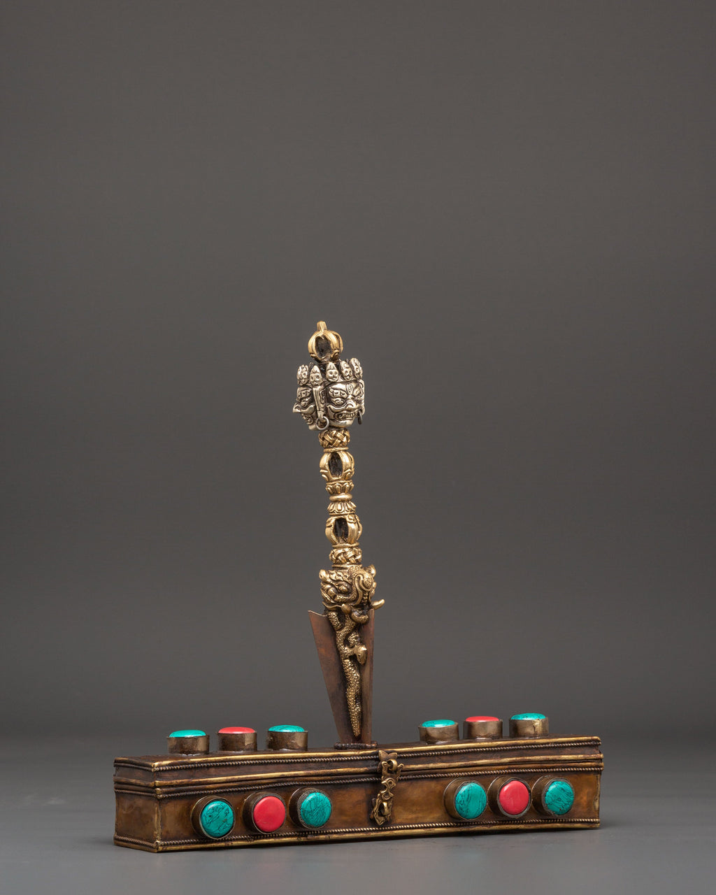 Tibetan Ritual Phurba with Box | Handcrafted Buddhist Artifact