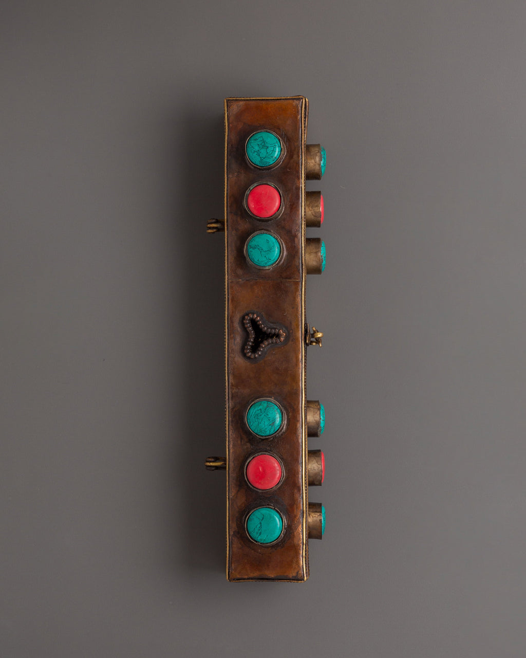 This Tibetan Phurba with Box is a powerful spiritual tool rooted in ancient Himalayan tradition, expertly crafted from brass and copper. Adorned with turquoise and coral stones, it serves as both a sacred ritual dagger and a captivating decorative piece. Perfect for enhancing your meditation space, tantric rituals, or altar, the Phurba is believed to channel protective energy and deepen spiritual practice. Housed in an elegant box, it offers a meaningful symbol of transformation and balance, making it an essential addition to any Buddhist or spiritual setup seeking authenticity and powerful symbolism.