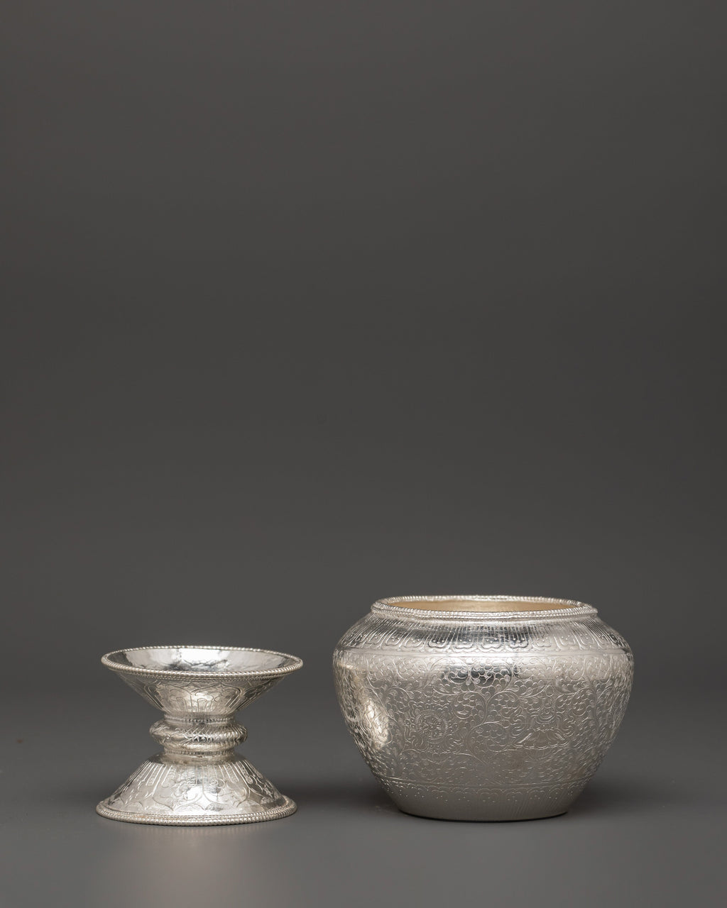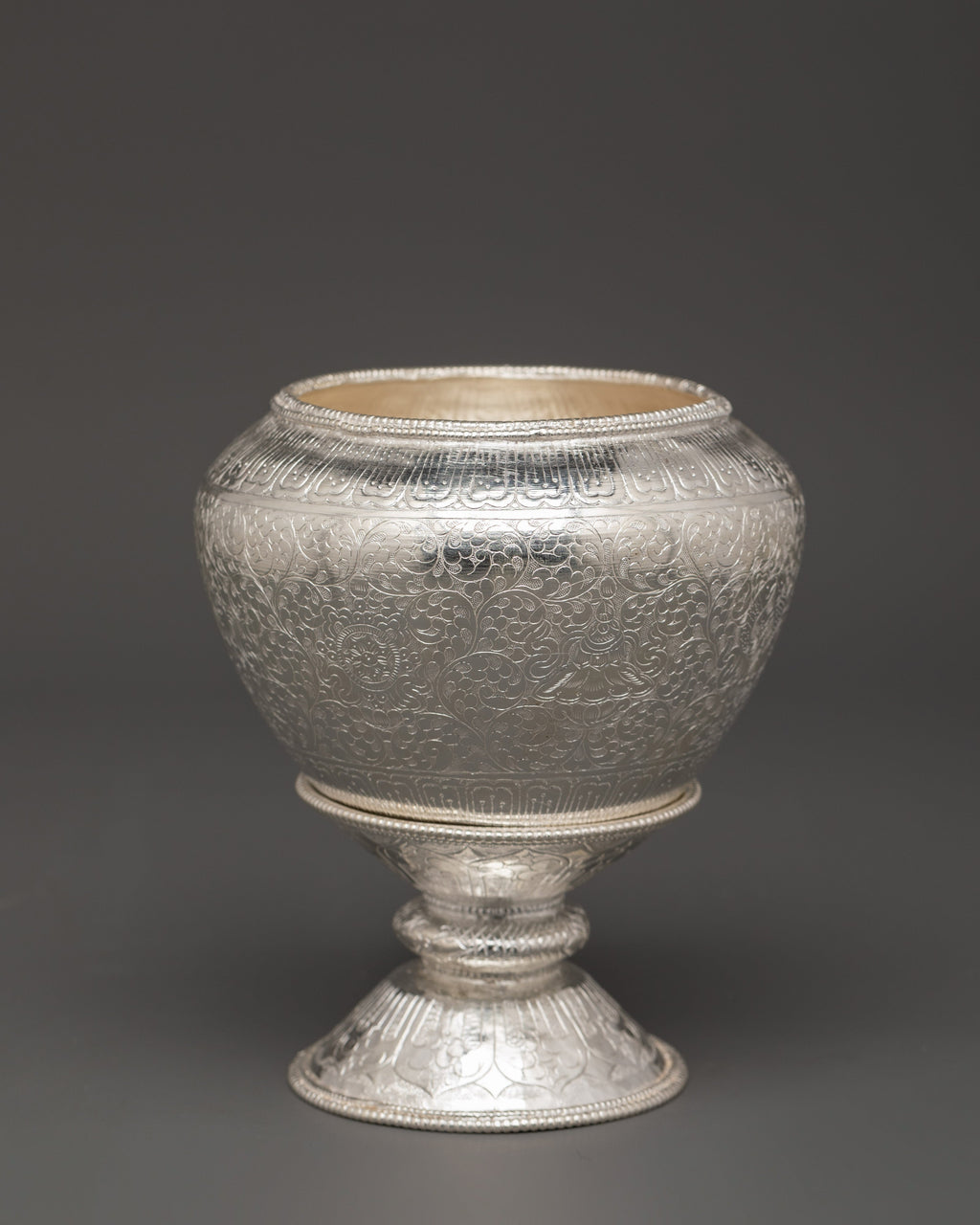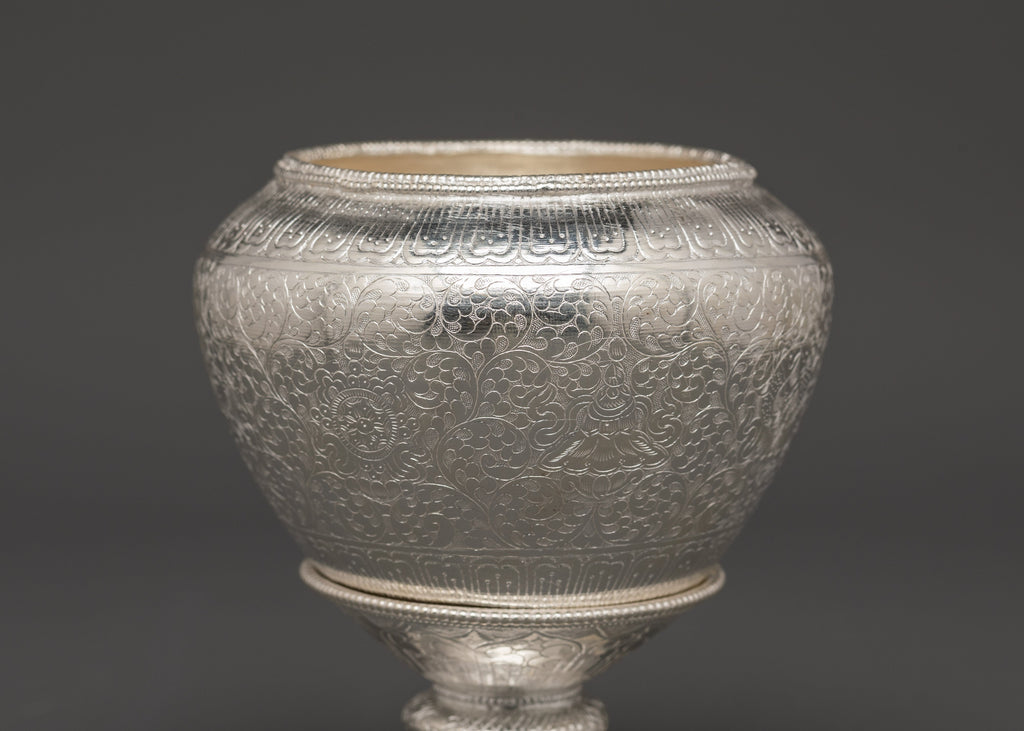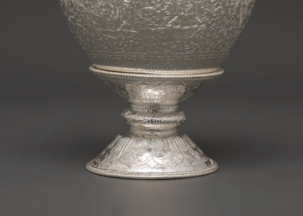 Tibetan Pure Silver Golpa Rice Pot with Stand | For Spiritual Home Decor