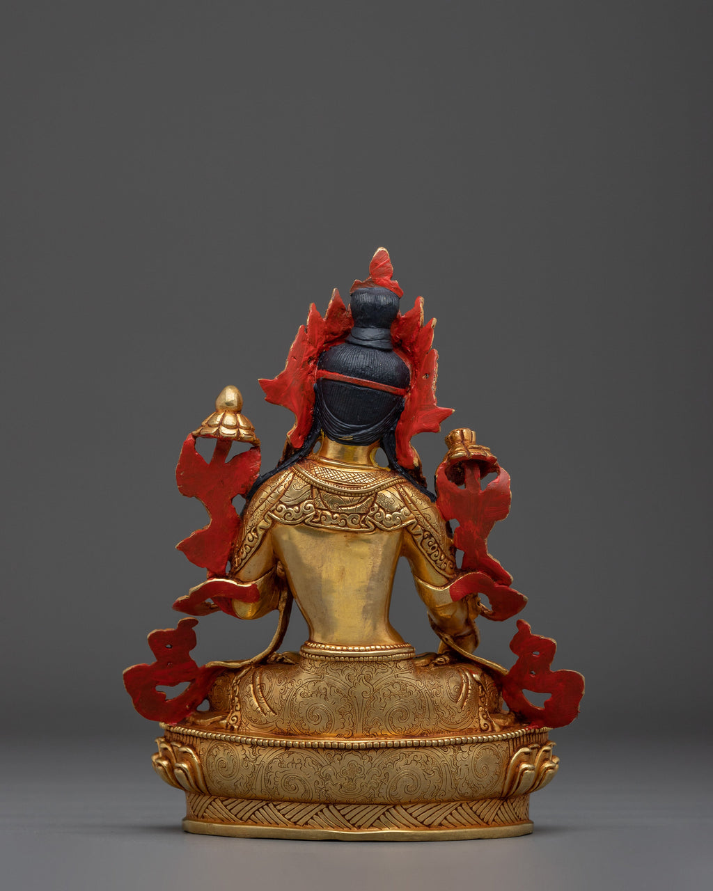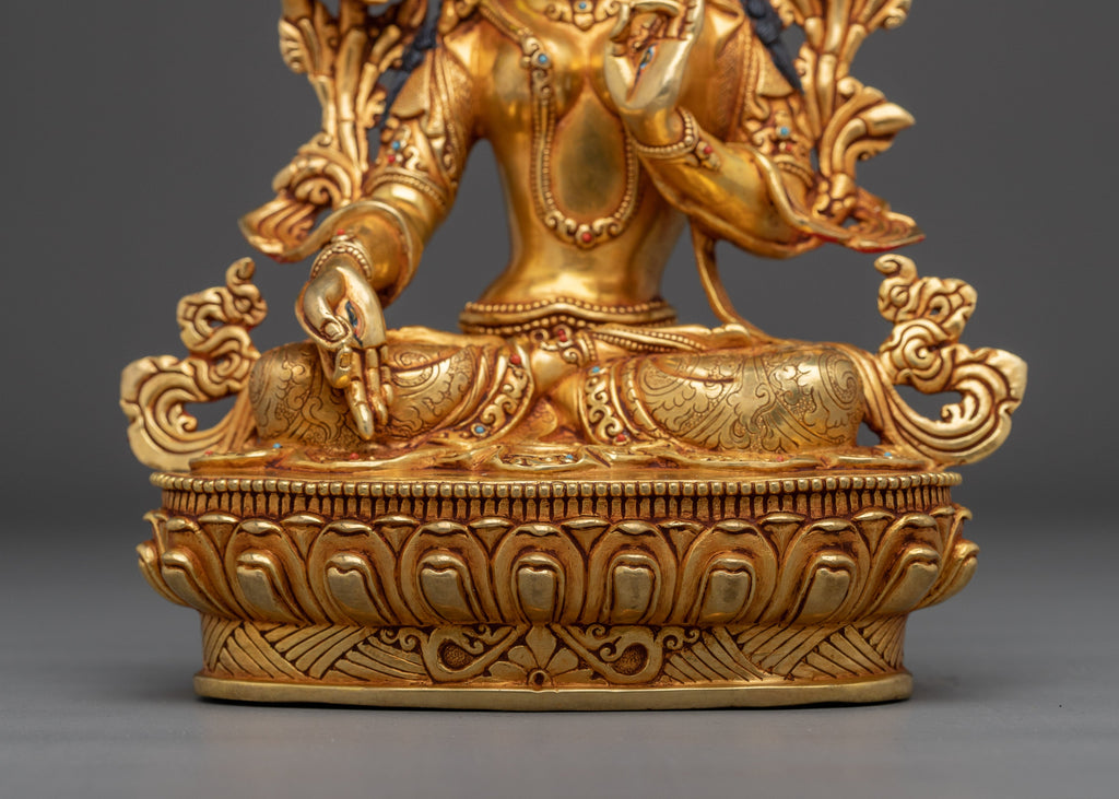White Tara is depicted with seven eyes, which represent her caring alertness, and make her apart. Aside from the two usual eyes, she has a third eye on her forehead, one on each hand, and one on the soles of her feet. Her graceful appearance and elegant design make this statue a powerful symbol of healing, compassion, and protection, inviting longevity and good health to those who revere her.