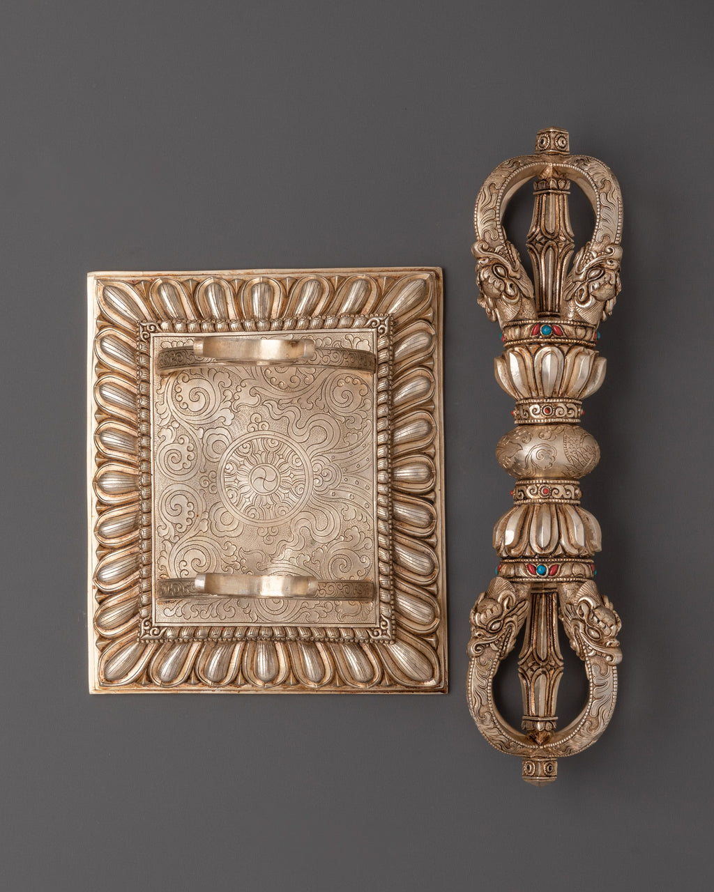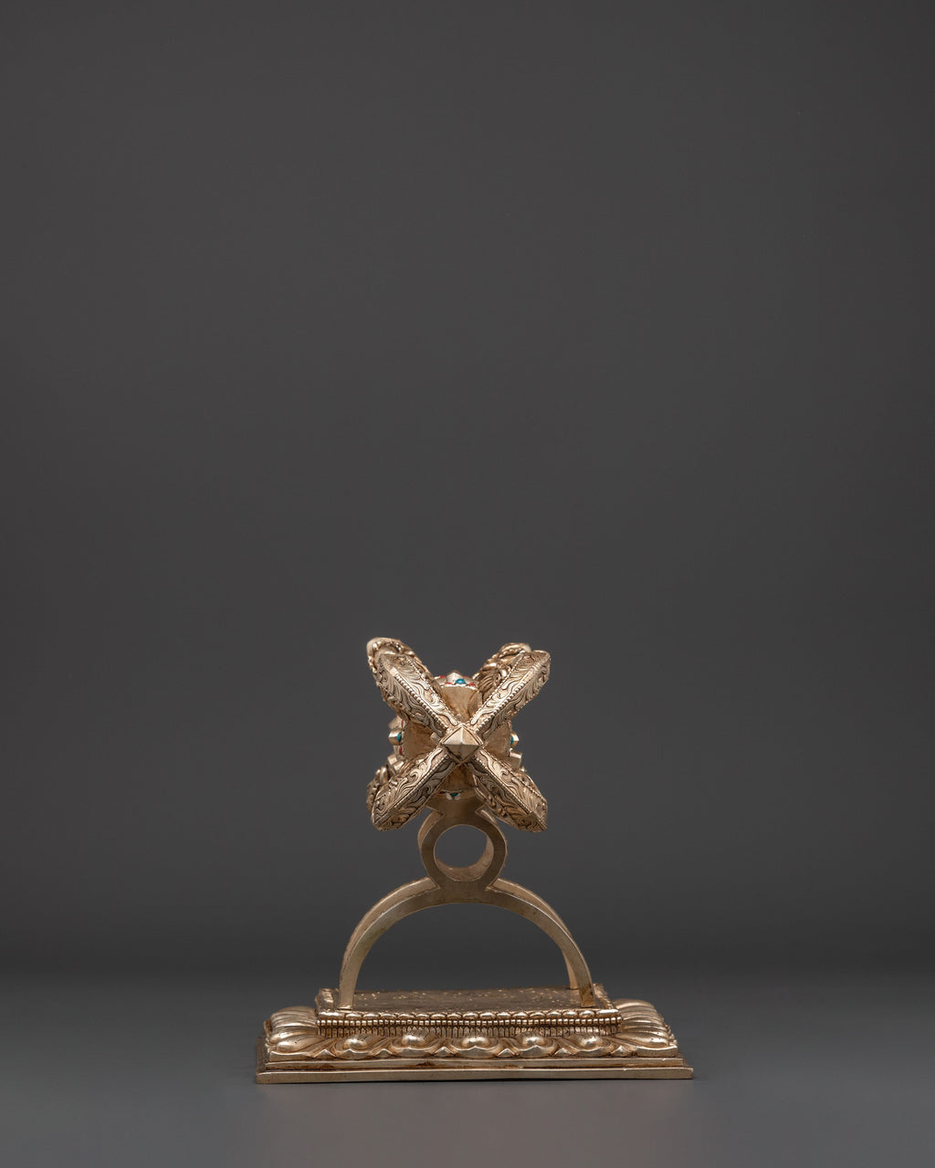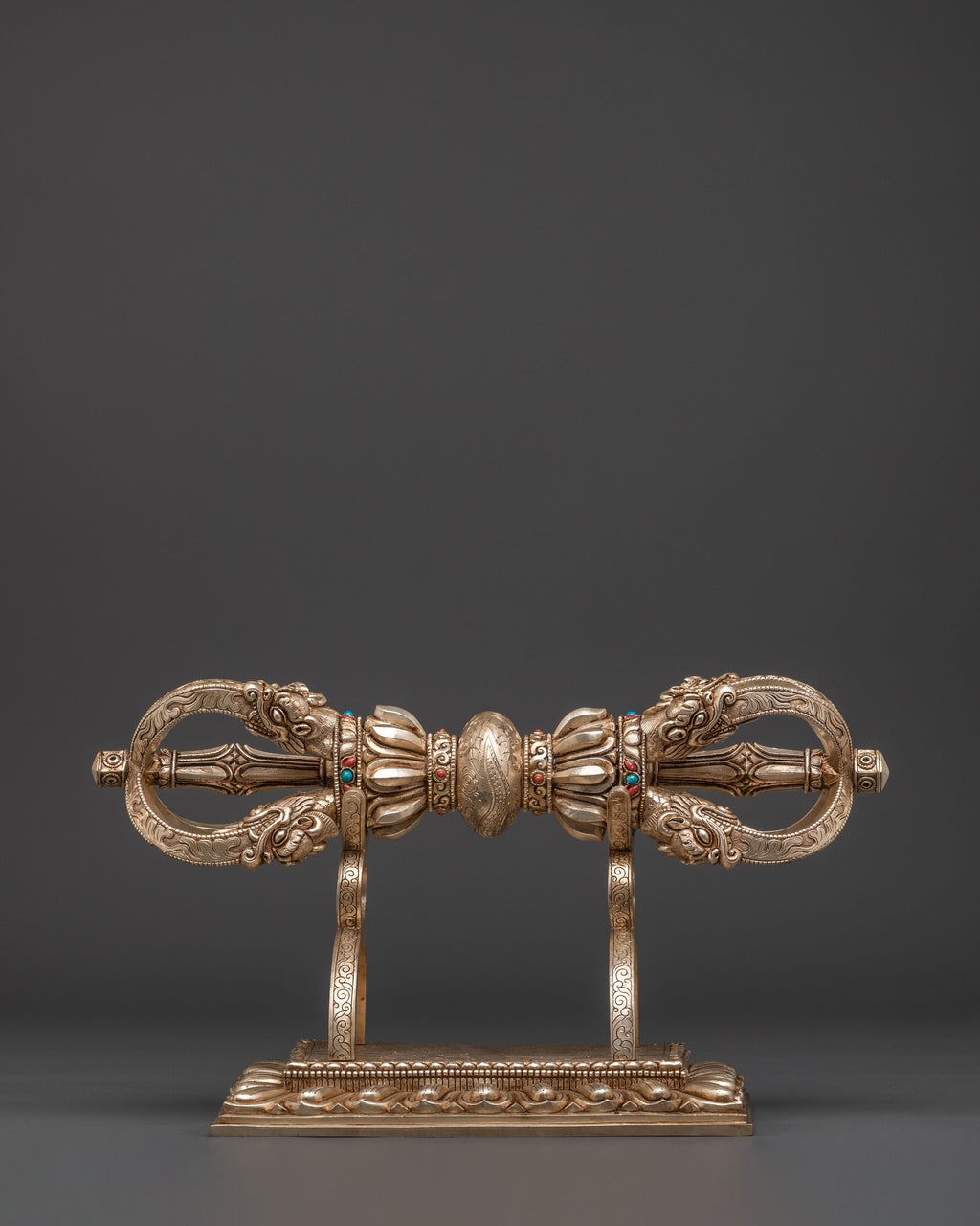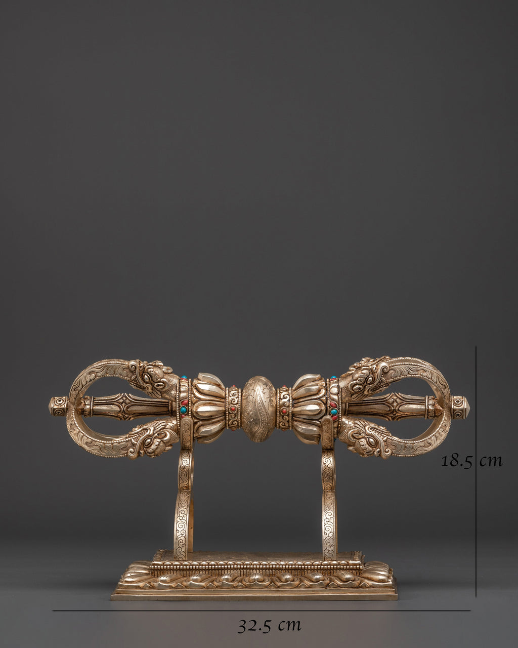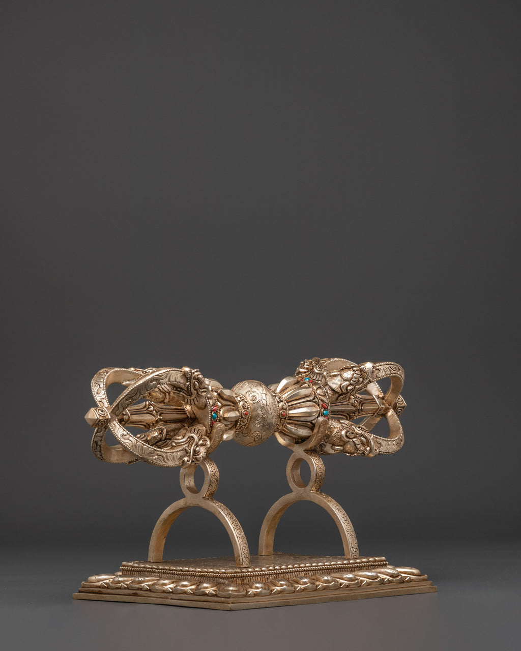 Tibetan Ritual Vajra with Stand | Silver Plated Copper Dorje for Buddhist Altar