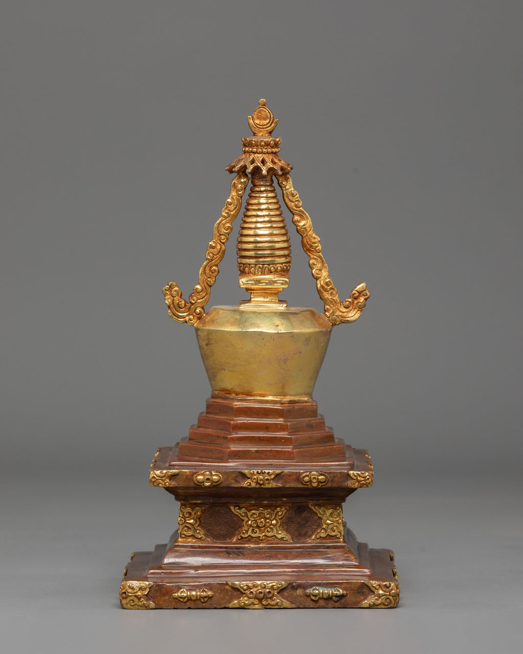 Handmade Gold Plated Tibetan Stupa | Sacred Himalayan Reliquary
