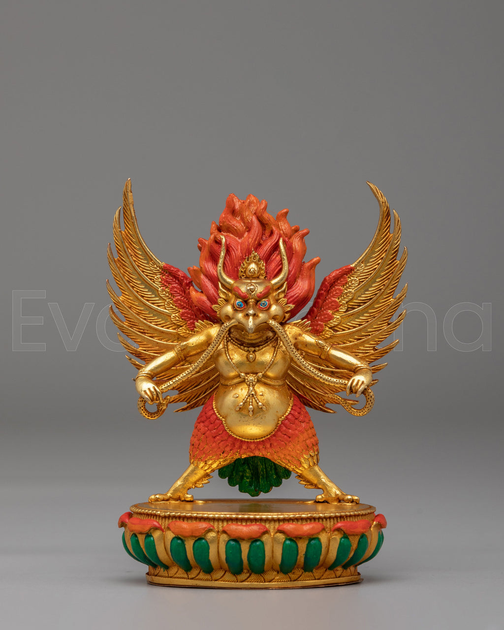 This Garuda statue is not only a beautiful decorative piece but also an important spiritual talisman in Tibetan Buddhism. It is believed to offer protection and strength to its devotees, helping them overcome obstacles and fears. Placing this Garuda in your home or meditation space serves as a powerful reminder of the strength and spiritual protection offered by this mythical creature. It is the perfect gift for those seeking to deepen their spiritual practice or invite positive energy into their lives.