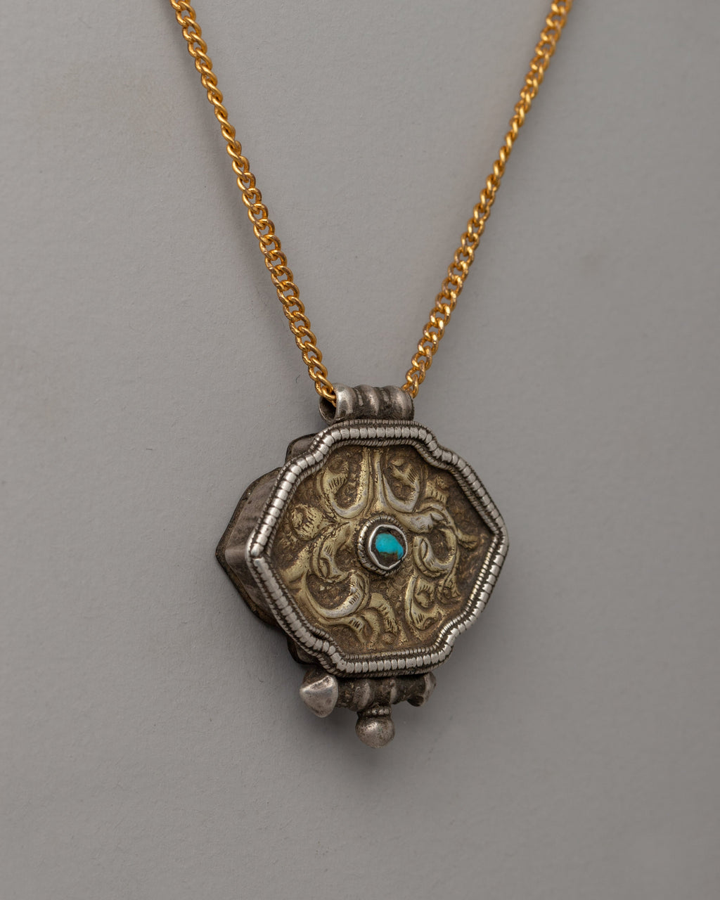 The Tibetan Ghau Box Locket, painstakingly crafted with attention to detail, is a wonderful gift for those who practice Tibetan Buddhism or appreciate spiritual symbols. The turquoise stone enhances the locket's energy, making it an ideal aid for meditation or transporting spiritual items. Whether for personal use or as a meaningful gift, this locket blends beauty, history, and spiritual significance.