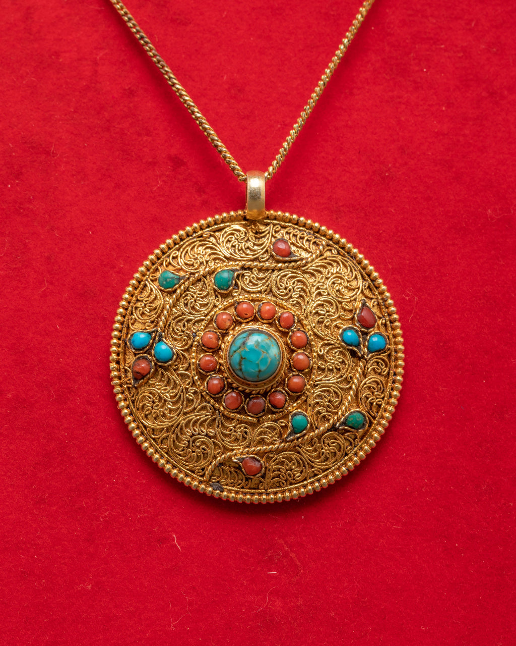 The coral stone symbolizes vitality, emotional healing, and protection, while the turquoise brings spiritual growth and protection. Together, these stones create a balanced, harmonious energy that makes this locket not only a stylish piece of jewelry but also a meaningful talisman for positive energy and blessings.