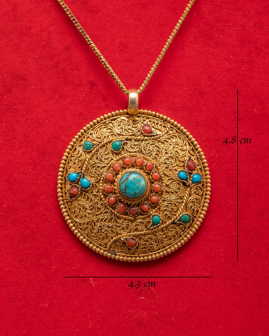 This Silver Locket with Coral is a beautifully crafted pendant made from silver and plated with gold for an elegant, radiant finish. Featuring coral and turquoise stones, this locket embodies both beauty and spiritual significance. Measuring 4.8cm in height and 4.3cm in width, it’s the perfect size for everyday wear or special occasions.