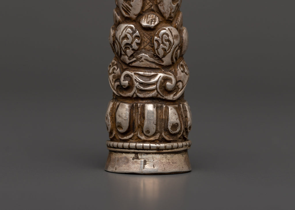 Tibetan Silver Seal Stamp | Buddhist Symbolic Tool for Altar