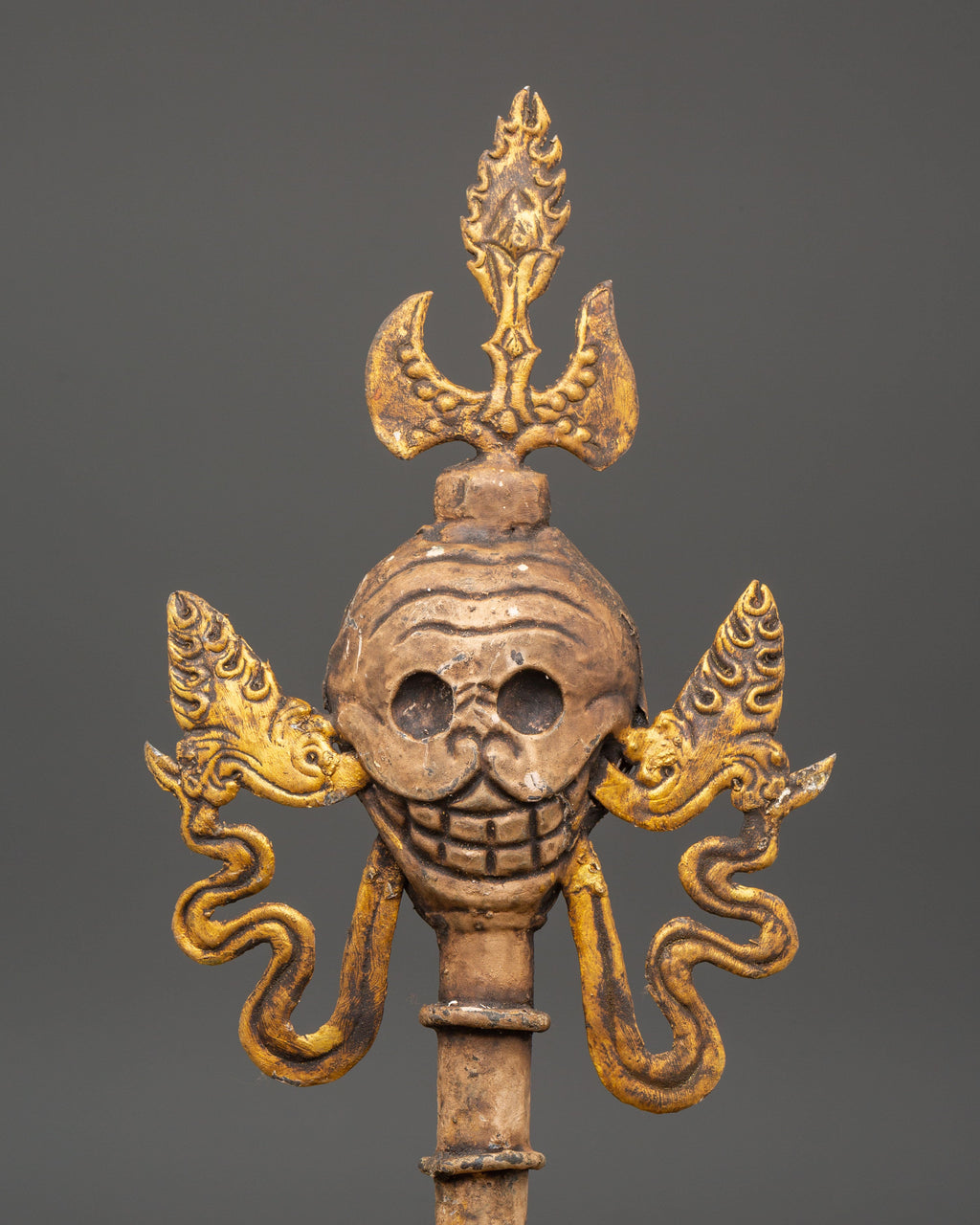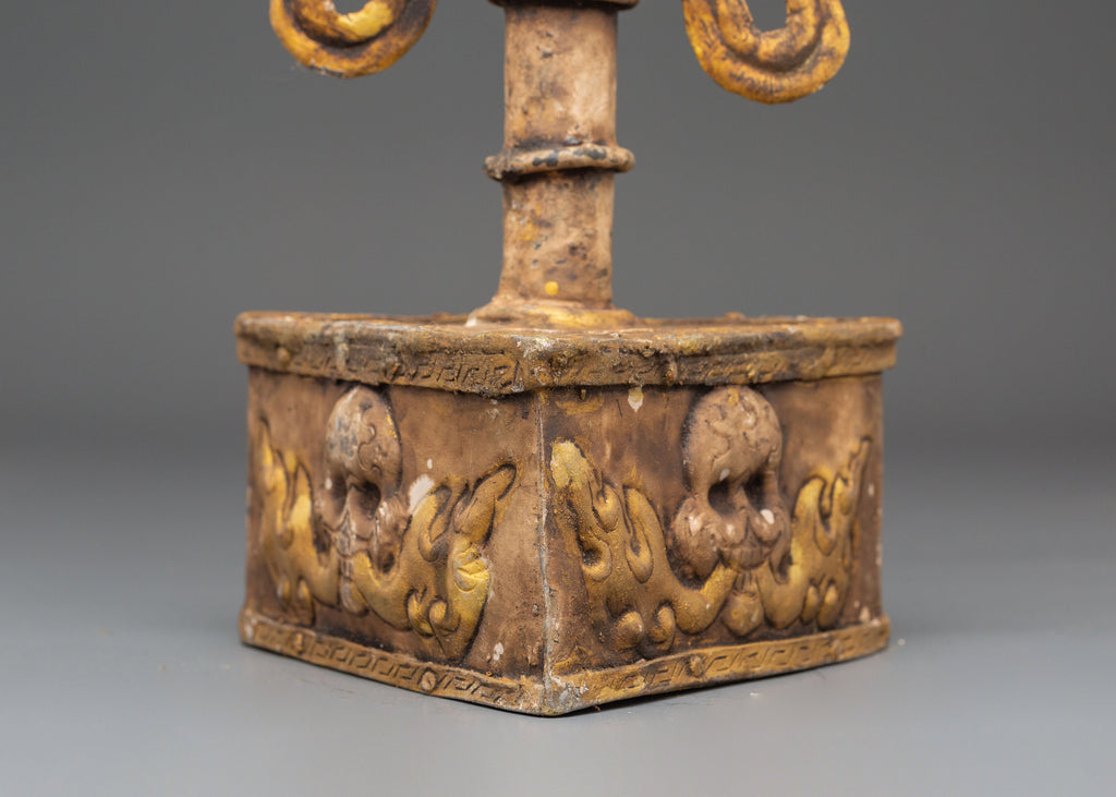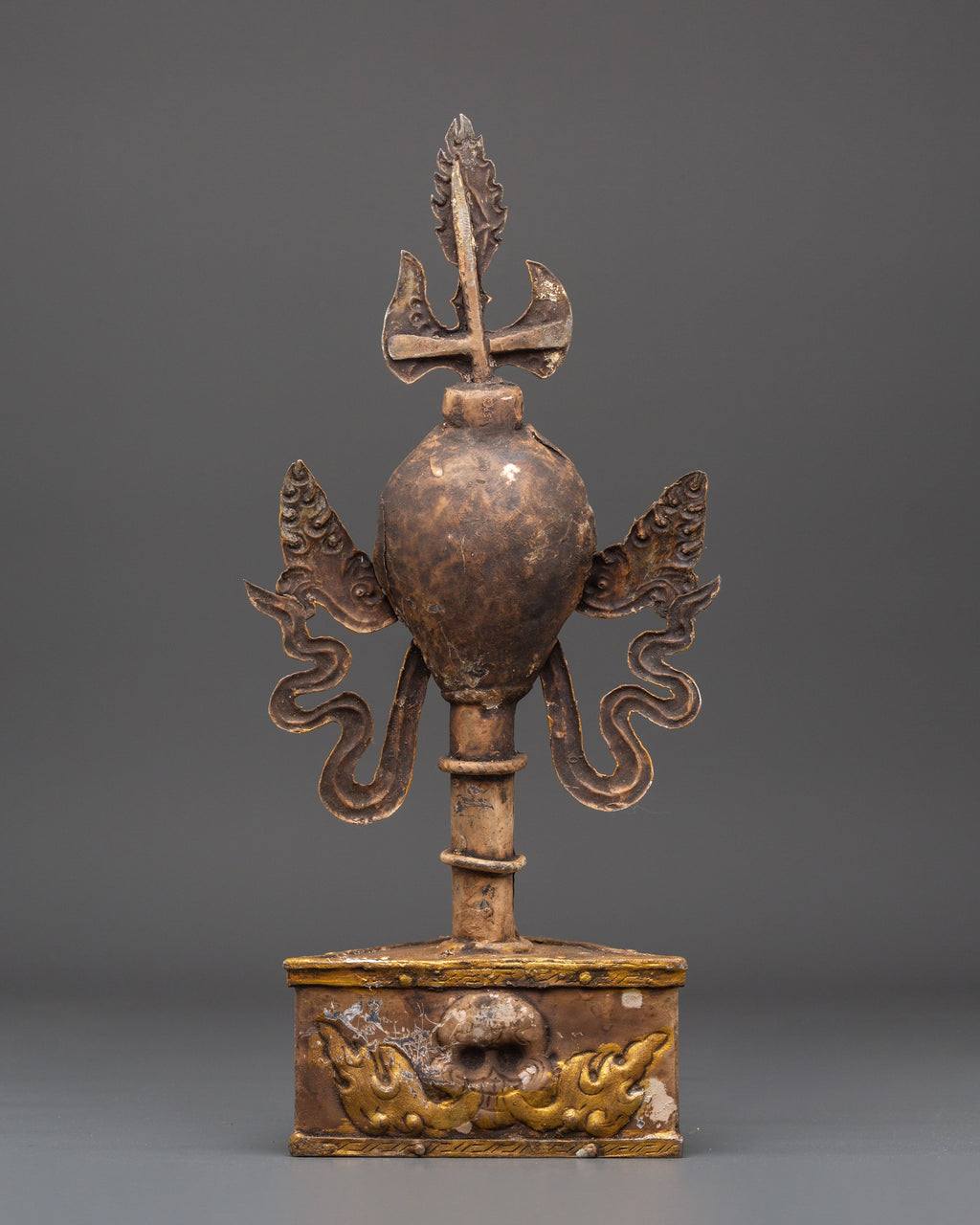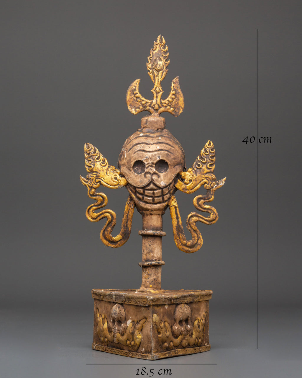 The Tibetan Skull Ritual Decor is not only a potent ceremonial object, but also a stunning altar piece for meditation rooms and holy areas. Its copper sheen reflects the mystical essence of Himalayan ritual art, serving as both a spiritual symbol and a meaningful ornamental element. The skull's design depicts the breakdown of the ego and the awakening of higher consciousness, which is a key tenet in Tantric Buddhism. This Tibetan Skull Ritual Decor is ideal for Buddhist art collectors, meditation practitioners, and those looking for decor that epitomizes transformation, knowledge, and tranquility. It brings the ageless spirit of the Himalayas into your holy space.