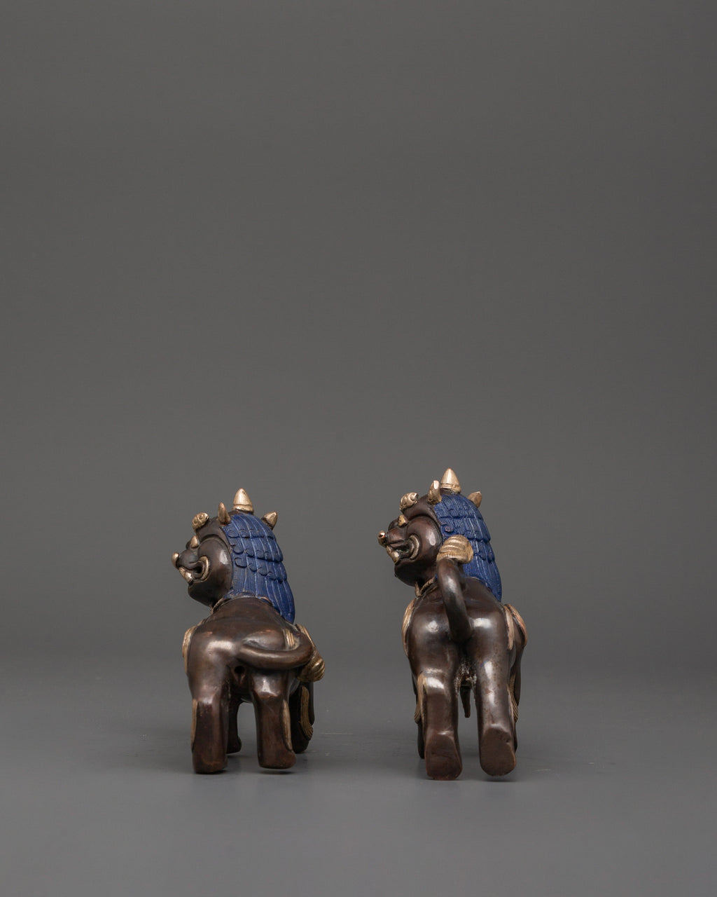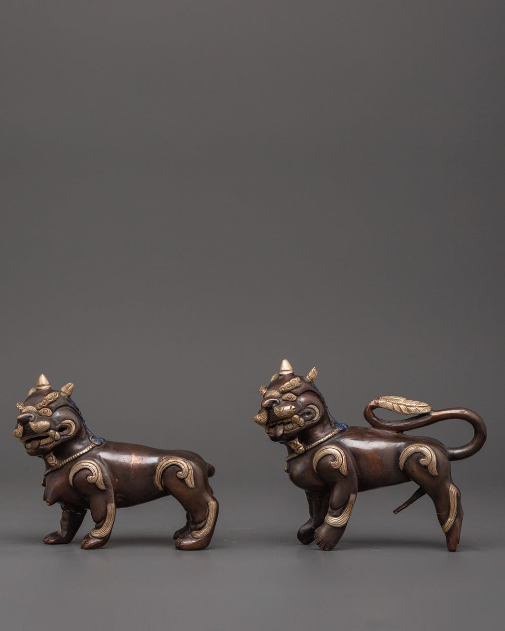 Tibetan Snow Lion Statue Set | Handcrafted Buddhist Guardian Figures