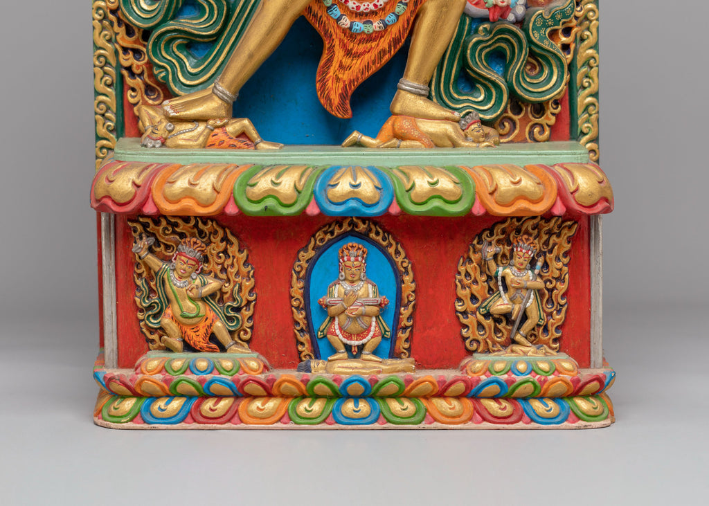 This Chakrasamvara statue is perfect for Tantric altars, meditation spaces, or as a sacred decoration in any home seeking to invoke the transformative energy of Tantric Buddhism. Its gold-plated finish and wooden craftsmanship make it a stunning piece of art that will add spiritual depth and beauty to any room. Whether for Tantric rituals, meditation practice, or as a collector's item, this statue represents the sacred union of male and female energies and embodies the ultimate balance of wisdom and compassion.