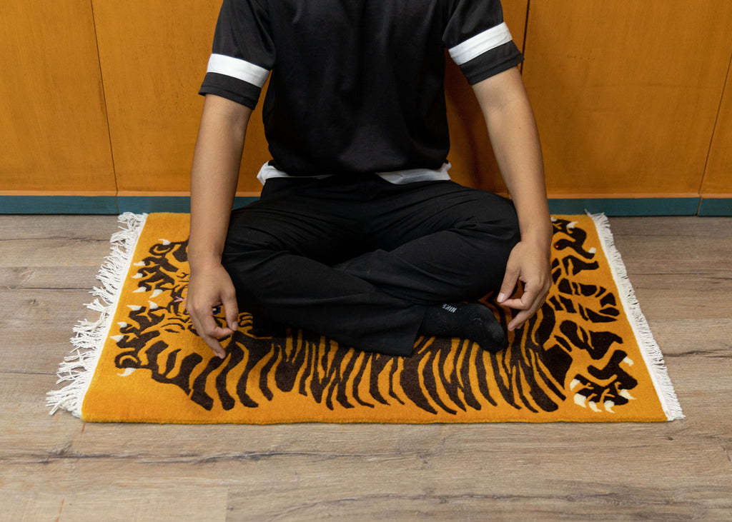 This Tibetan Tiger Print Rug, made of pure wool, exhibits ancient weaving skills that have been passed down through centuries. The silky wool fibers provide a smooth and sumptuous feel, bringing out the brilliant colors of the tiger print. The rug's 100 knot artistry offers a complex and sophisticated design, bringing depth and personality to your space. The distinct tiger motif represents strength, courage, and spiritual significance in Tibetan culture, making it more than just a decorative piece. This rug will surely spark a debate in any room.