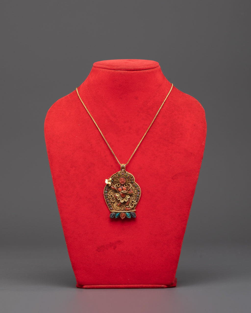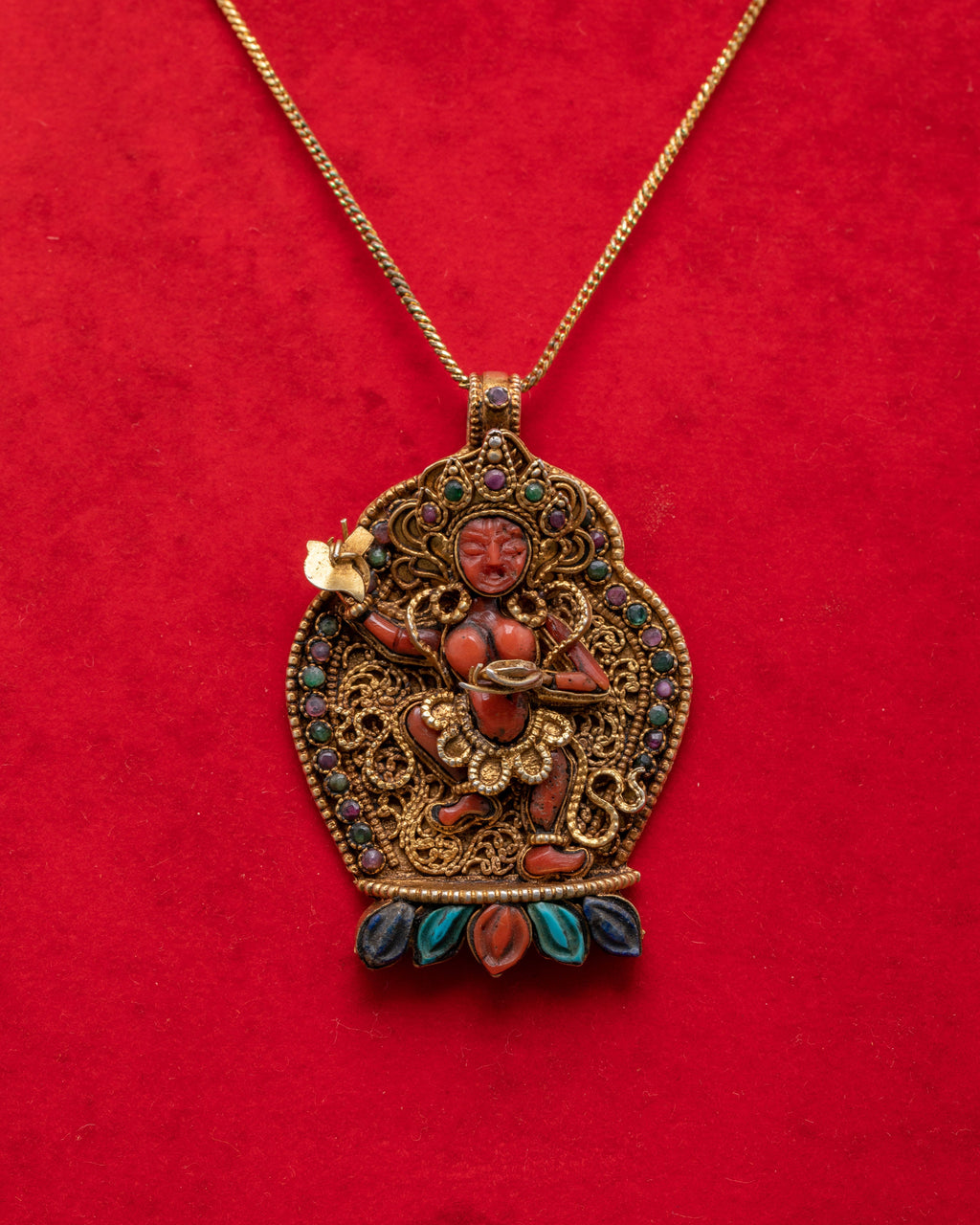 Handmade Tibetan Vajravarahi Dakini Pendant | Multi Stone Dorje Phagmo Amulet