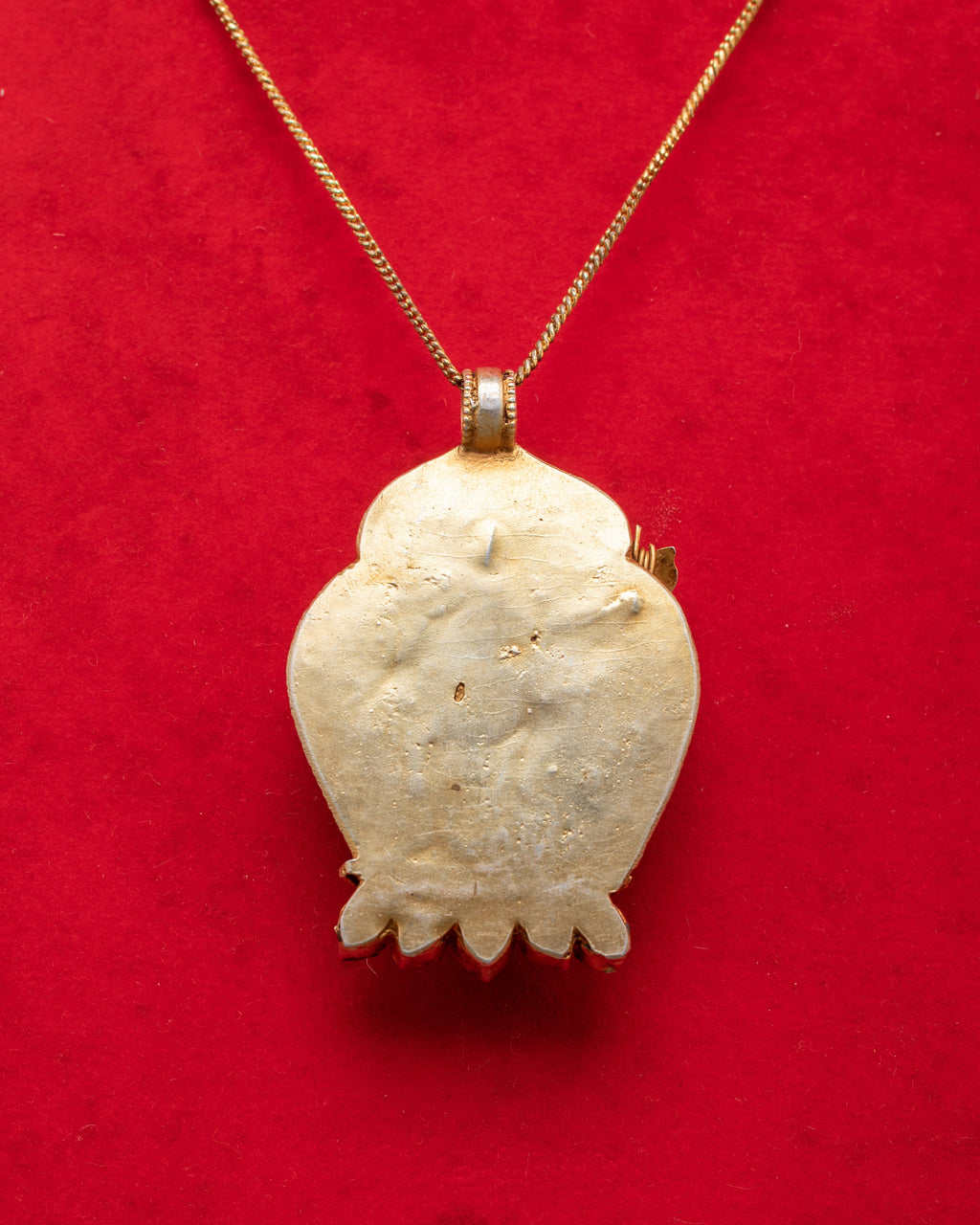 A Buddhist locket is a piece of jewelry designed to hold a small prayer, mantra, or image related to Buddhist practice. The locket may feature a design or image of a Buddhist deity, such as the Buddha, or a representation of a sacred symbol, like the lotus flower. It is typically worn as a talisman to remind the wearer of their spiritual path and to offer protection. Some Buddhist lockets are also used as a form of religious devotion and are frequently given as gifts to friends and family members to provide them with spiritual support and blessings.