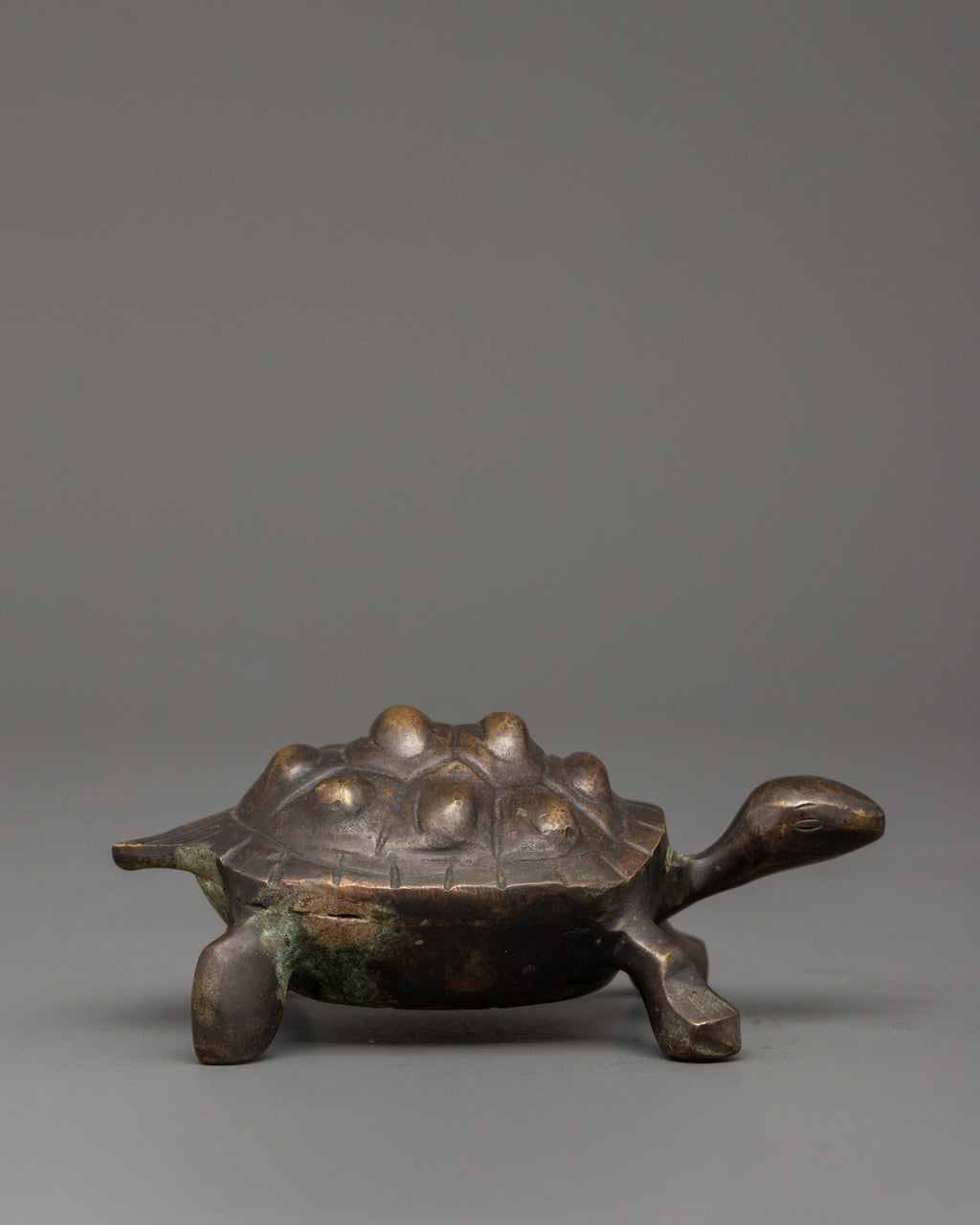 Brass Tortoise Statue with Antique Finish | Feng Shui Lucky Tortoise for Home Decor