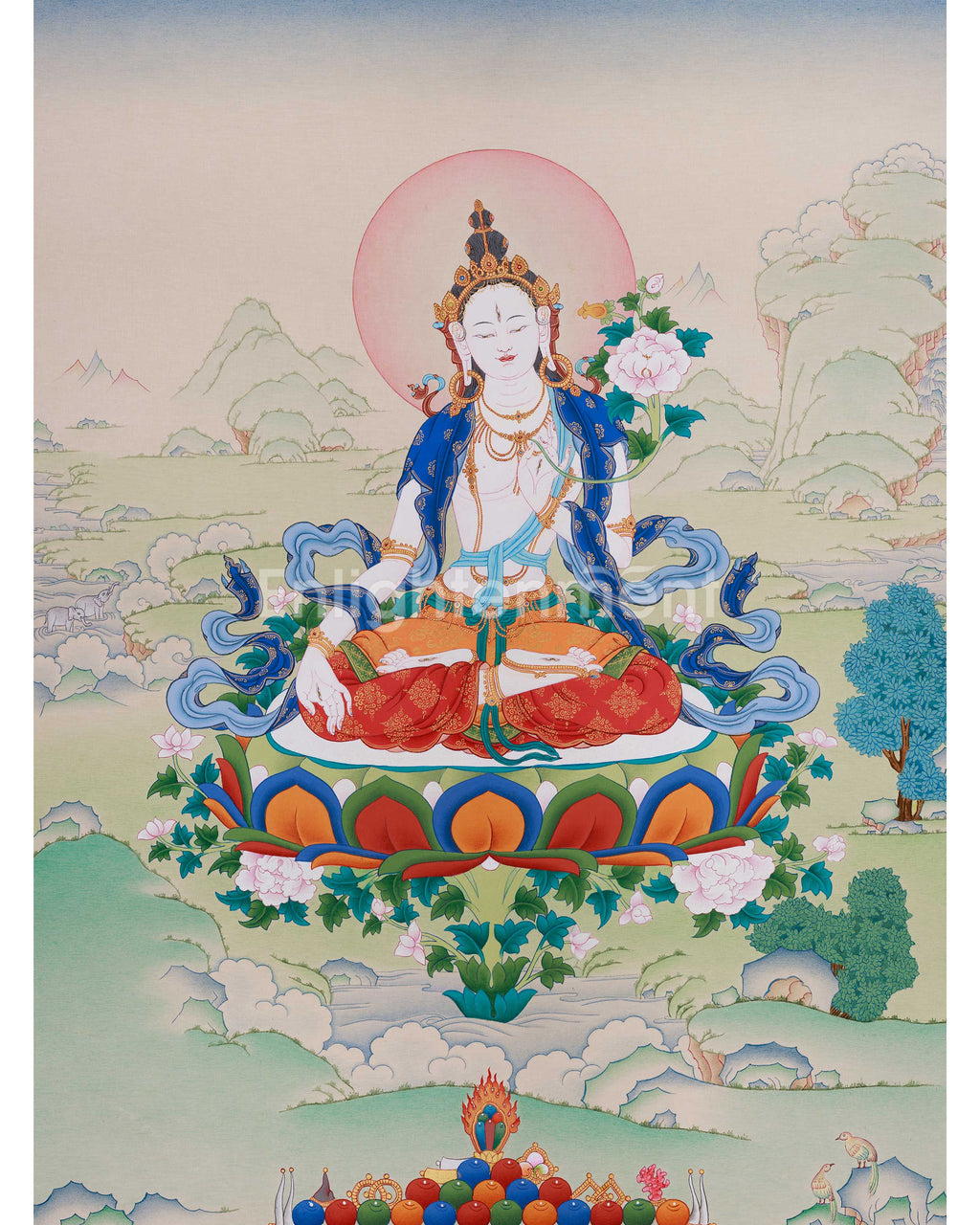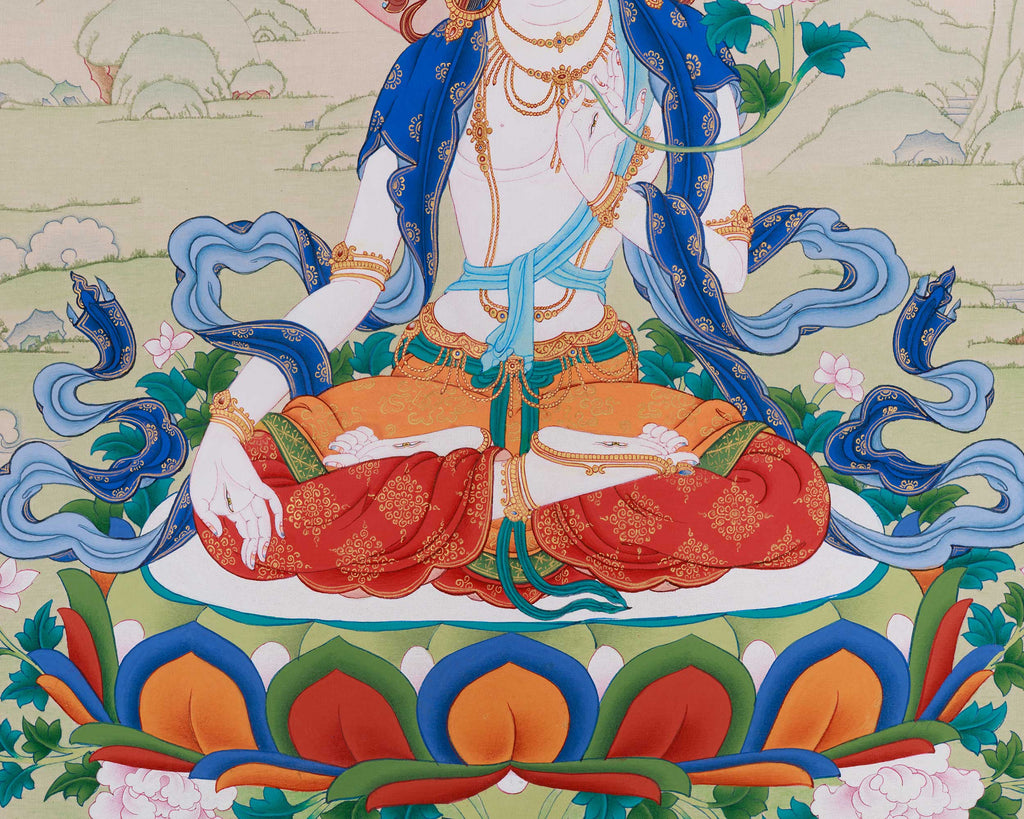 Hand-painted Traditional Art of White Tara | Healing Deity