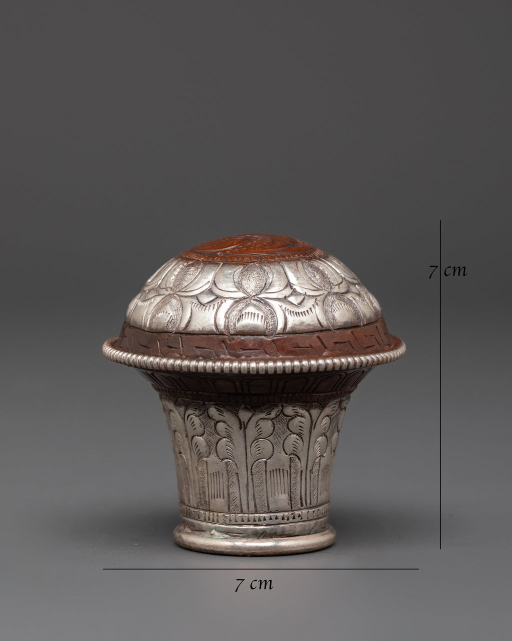 This cap is made of copper and features silver plating. It looks very classy and has a spiritual value. The clear rope design makes it a great addition to any collection of unique, handmade items for anyone interested in spiritual activities or rituals. It weighs only 0.068 kg and is small enough to fit in with your home décor, décors, and shrines. This vital artifact will add beauty, culture, and tradition to your environment, enhancing your spiritual activities.