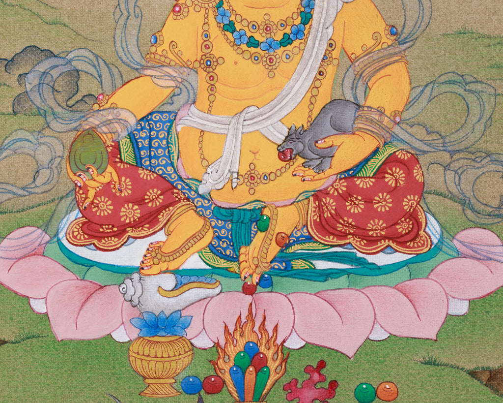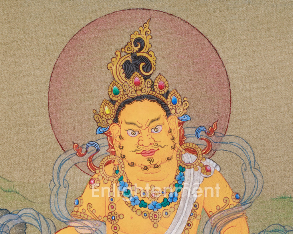 23cm Traditional Dzambhala Thangka | Hand-Painted Sacred Kubera | Housewarming Gifts