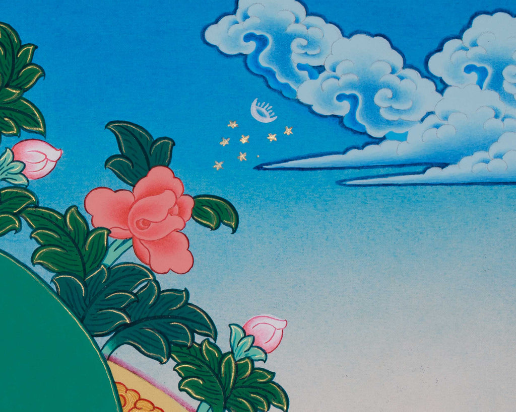 THIS THANGKA IS HAND-PAINTED IN THE TRADITIONAL STYLE BY A NEPALI ARTIST, AND THE QUALITY IS HIGH