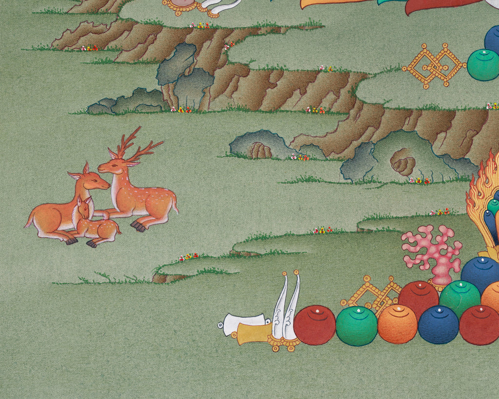 HAND-PAINTED WITH NATURAL LHASA STONE COLOR AND GENUINE 24K GOLD IN TRADITIONAL KARMA GADRI STYLE