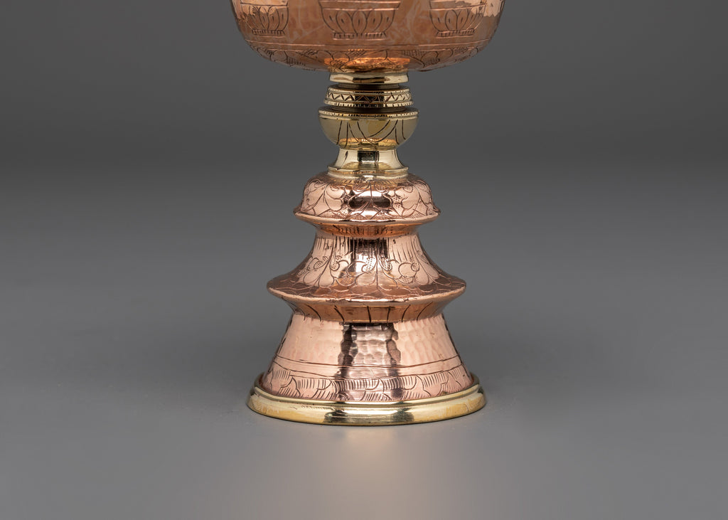 Each lamp exemplifies traditional artistry and devotion, linking the practitioner to millennia of Buddhist rituals. In Buddhist iconography, the Lighting Lamp is more than just a source of light; it is an offering of wisdom that guides practitioners on the path to enlightenment. This copper brass lamp, whether put on a home altar, in a prayer room, or during a meditation practice, promotes spiritual connection and dedication.