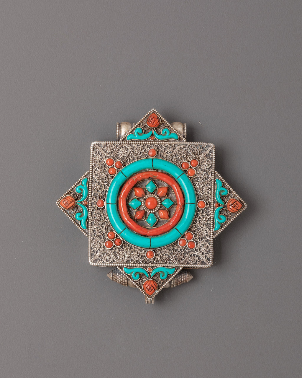 The Mandala Ghau Box Locket is more than just jewelry; it’s a piece of cultural heritage. Ideal for collectors, spiritual seekers, or anyone drawn to Tibetan and Buddhist traditions, this locket is crafted to be both meaningful and aesthetically beautiful. Whether worn daily or kept as a treasured artifact, the locket’s design and symbolism will continue to inspire the wearer. The use of turquoise and coral further enhances its protective and healing qualities, making it a cherished item in any collection. This locket is perfect for anyone who values deeply symbolic, handcrafted jewelry that represents inner peace and spiritual growth.