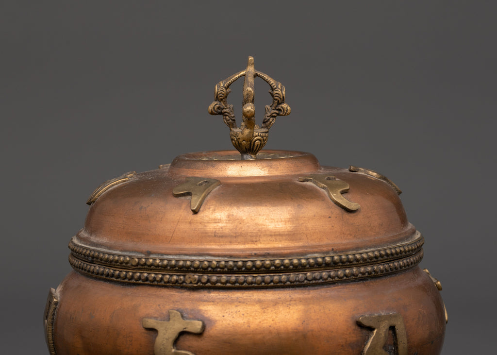 Traditional Religious Tibetan Rice Pot | Vajra Lid Ritual Sacred Offering Item