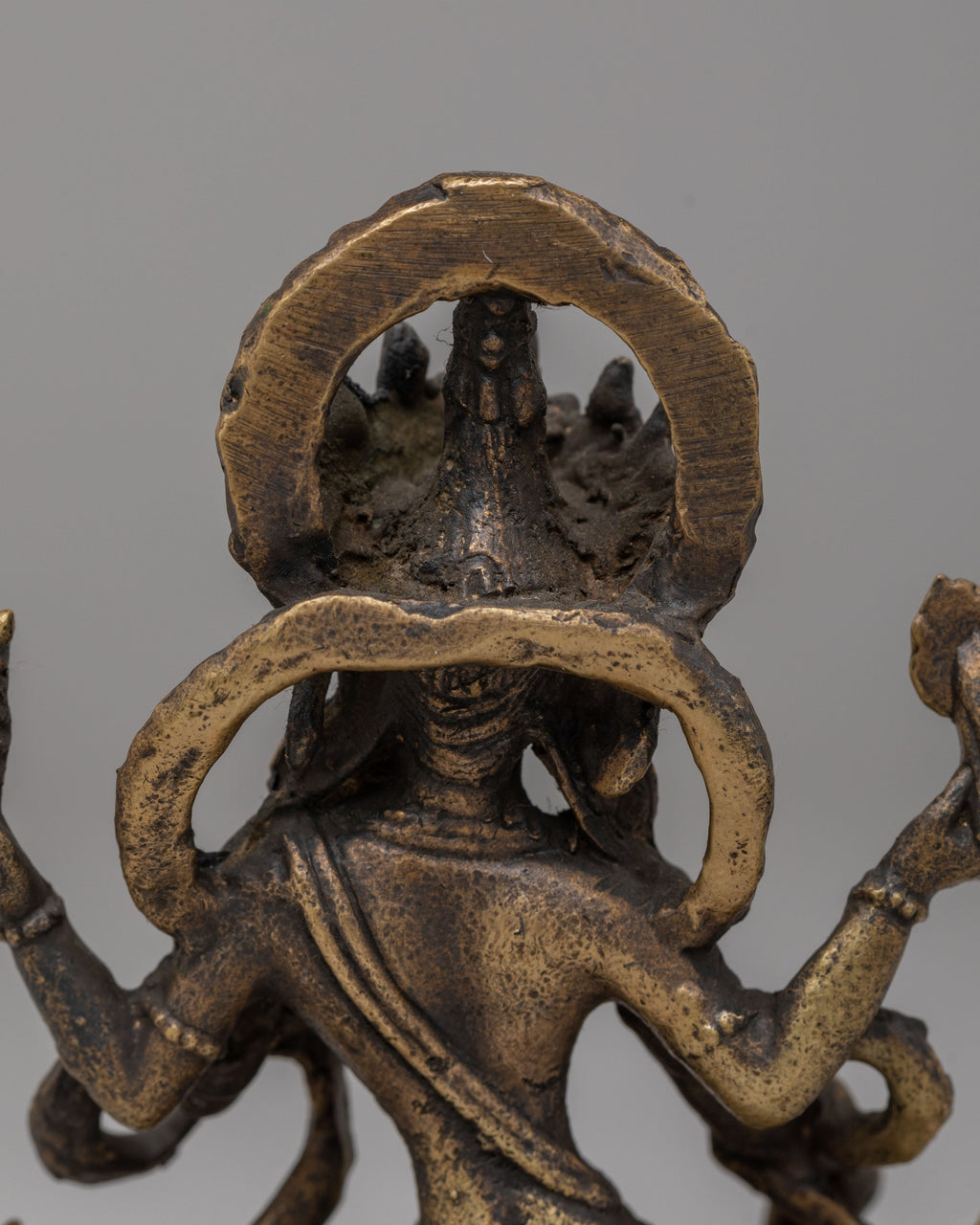 Expertly handcrafted from brass, the statue reflects traditional Hindu devotional craftsmanship inspired by classical temple artistry. The warm golden tone enhances the fine details and ornamental carvings, giving the idol a sacred and graceful presence. Brass is widely used in Hindu religious sculptures due to its strong connection with ritual artistry and traditional worship practices. The smooth finishing and intricate detailing highlight the skill of artisans who preserve generations of sacred idol making techniques.