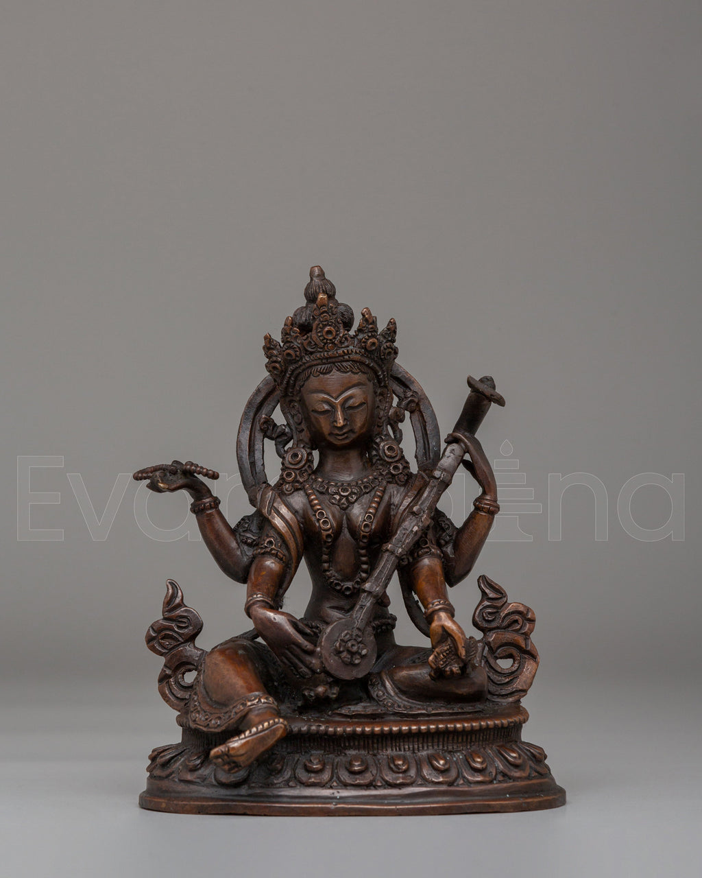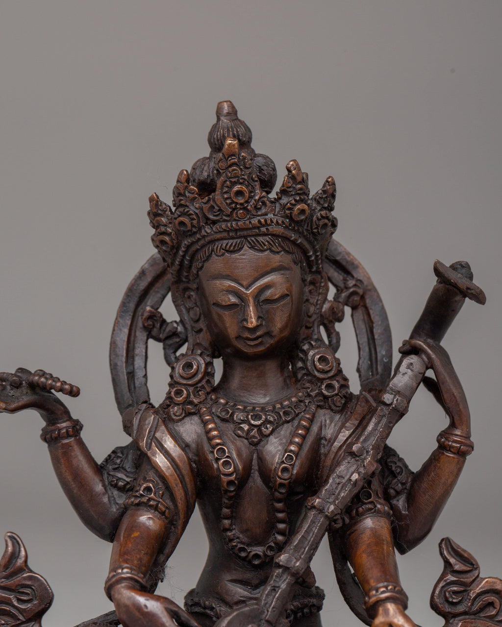 Handcrafted Traditional Saraswati Statue | Hindu Goddess of Wisdom