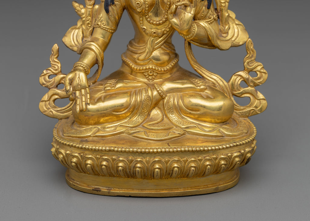 This Sita Tara Statue provides a deeper connection to Tara's compassionate and protective attributes, making it an ideal addition to meditation rooms, altars, or any other setting that values tranquility and spiritual reflection. Her divine presence in this handcrafted sculpture serves as a spiritual reminder of her guidance, wisdom, and nurturing energy, and is also a visual marvel. This Tara sculpture is ideal for anyone looking for protection, clarity, and a more profound sense of inner serenity. It brings tranquility and harmony to any setting.