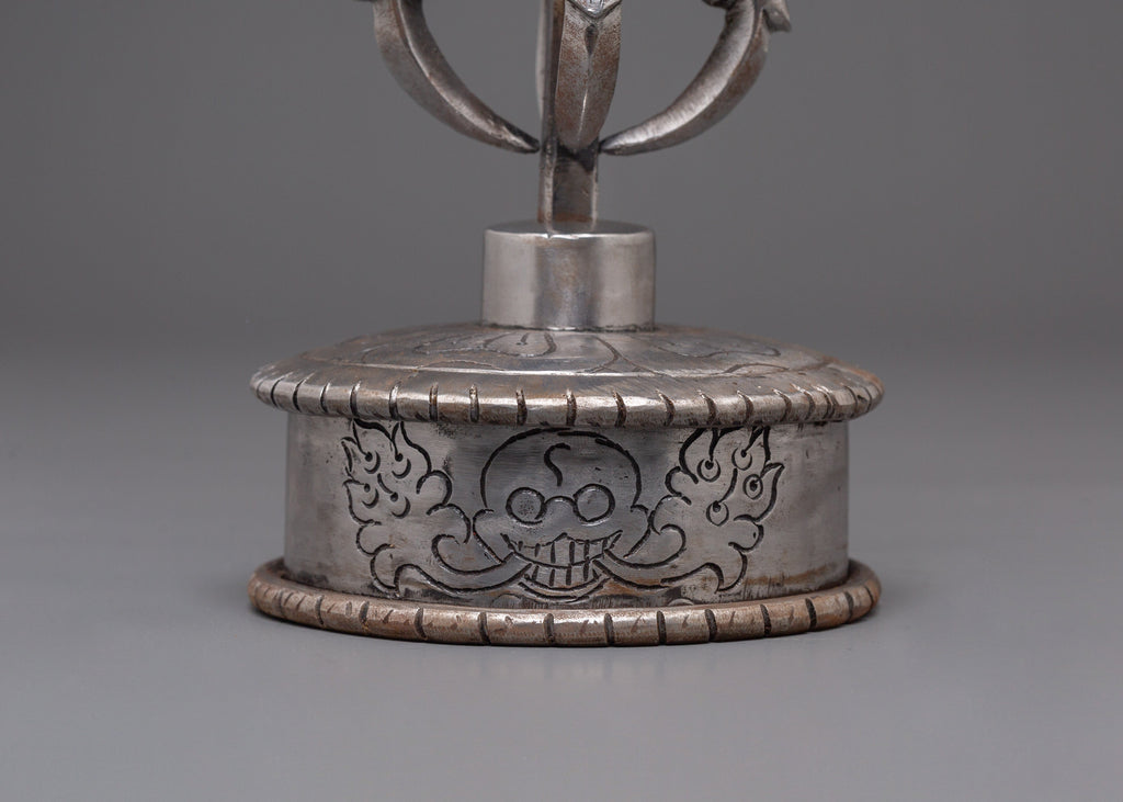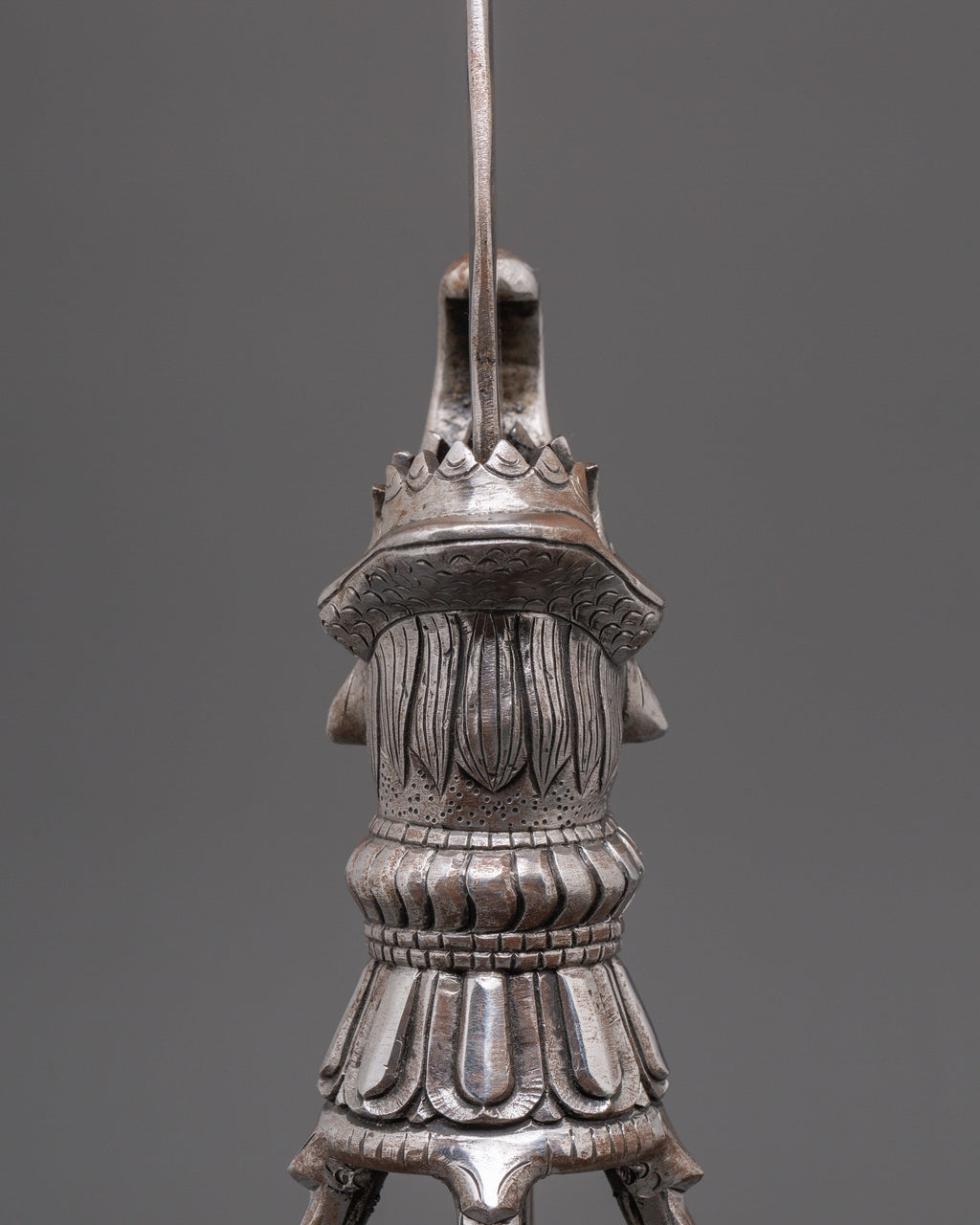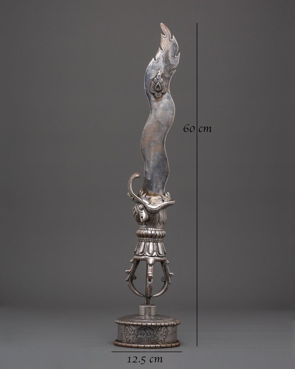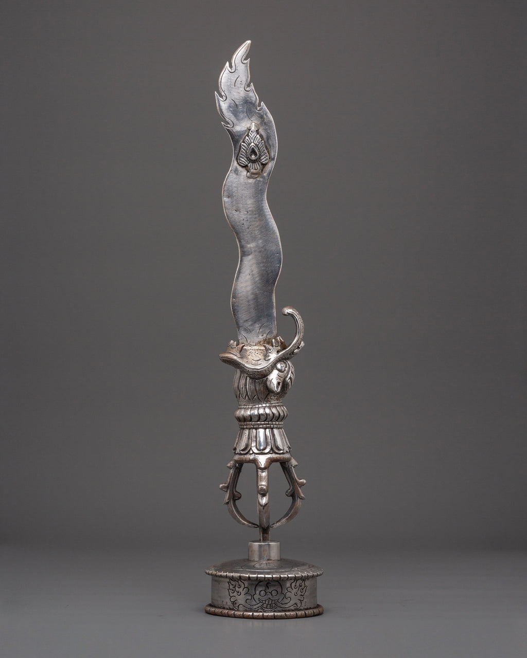 A Tibetan knife, also called a "phurba" or "kila," has cultural and symbolic meaning in Tibetan traditions. The unique three-sided blade of this ceremonial dagger represents the victory over ignorance, desire, and aversion in Buddhism. Tibetan knives, which are adorned with elaborate carvings and frequently have a tripartite handle representing different gods, are an essential part of religious rites, ceremonies, and spiritual practices. In addition to their spiritual significance, these knives might have practical uses in daily life, exhibiting a combination of deep cultural symbolism and usefulness in Tibetan communities.