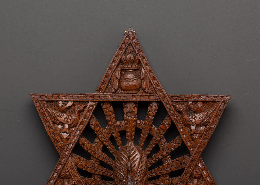Handcrafted Traditional Star Peacock Wall Art with Intricate Carvings