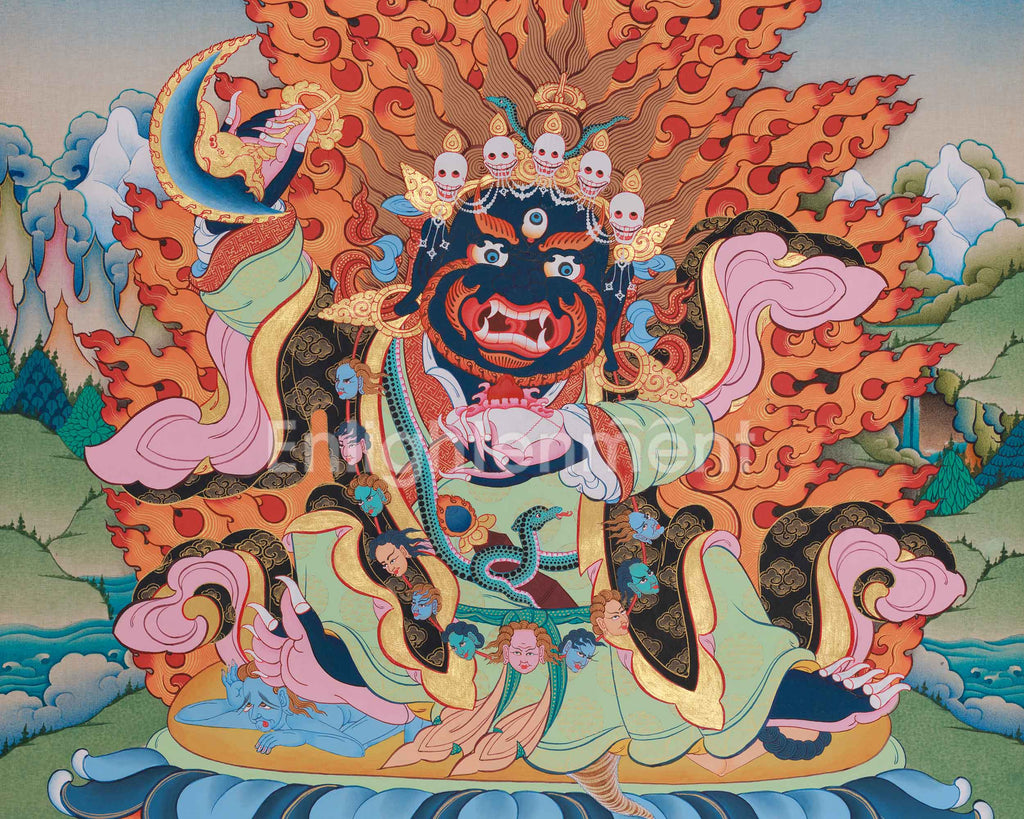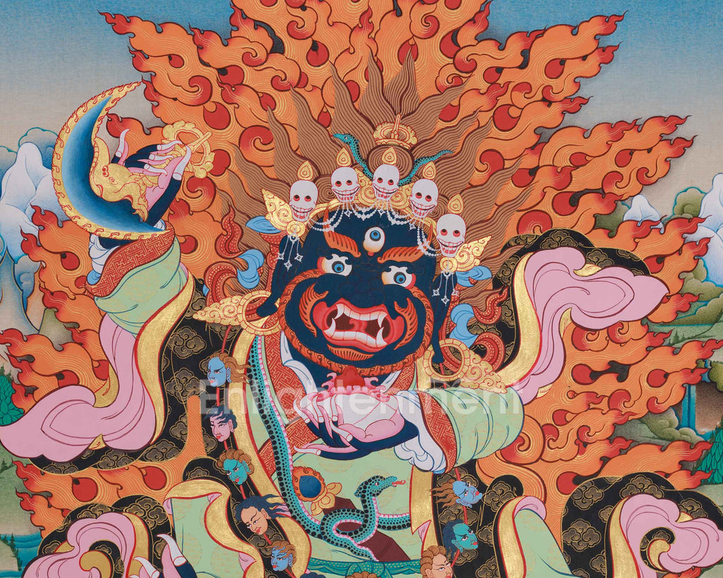 Hand-Painted Traditional Thangka of Mahakala Bernagchen | Spiritual Strength
