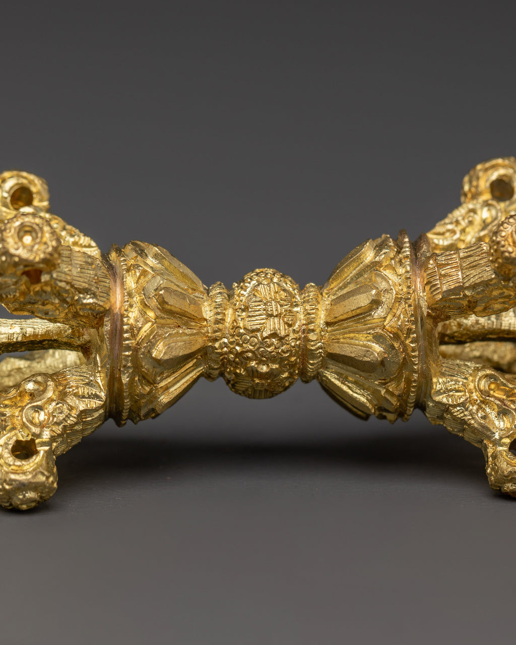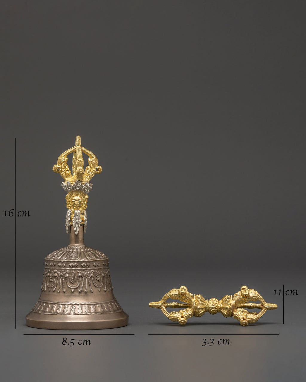The Vajra, which is 16 cm long and 8.5 cm wide, weighs 0.110 kg and is masterfully fashioned from bronze. Its shape represents the indestructible essence of compassion and skillful methods of Buddhist teachings. The bell and vajra represent the union of wisdom and method, creating a harmonic energy suitable for meditation, mantra recitation, and holy rites. The set's entire combined weight is 0.400 kg, making it light to carry while suitable for ceremonial usage.