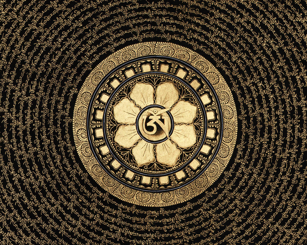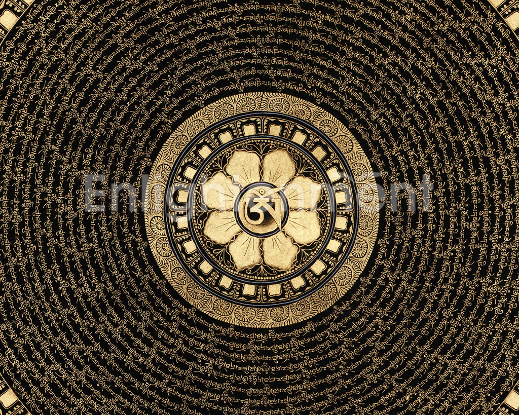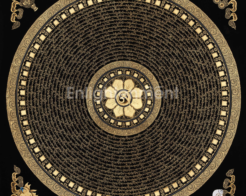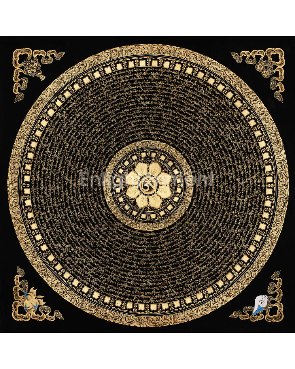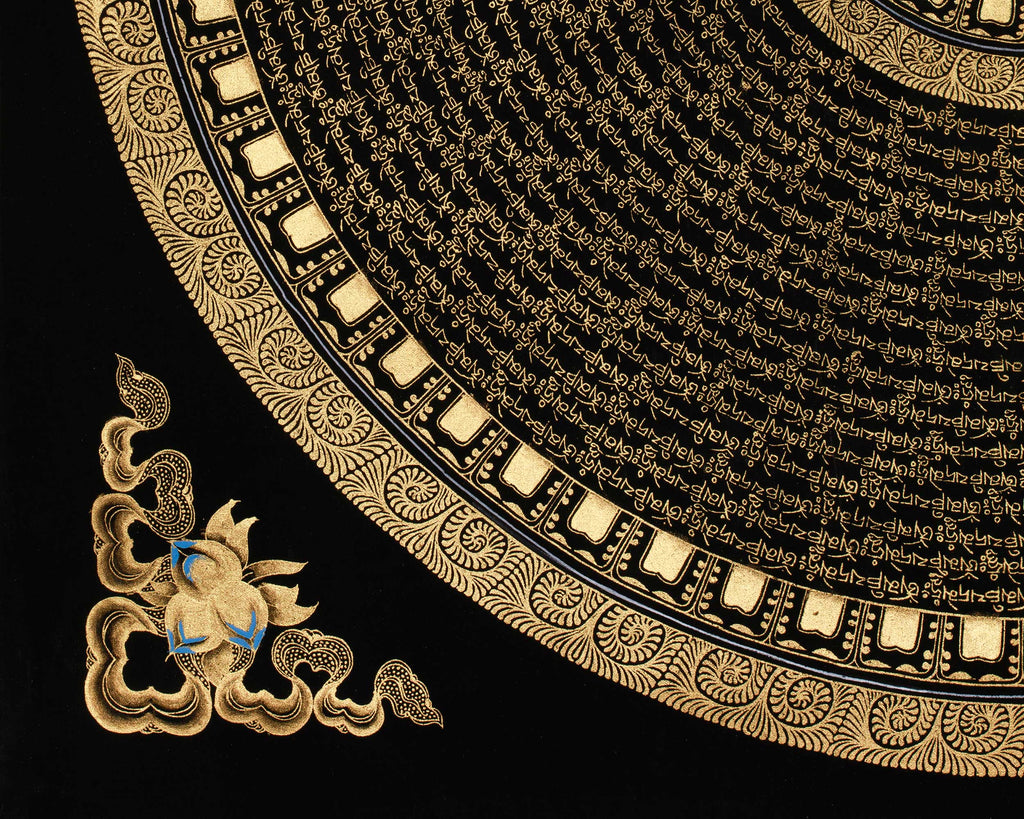 24K Gold Hand-Painted Traditional Tibetan Mantra Mandala Thangka | Spiritual Wall Art