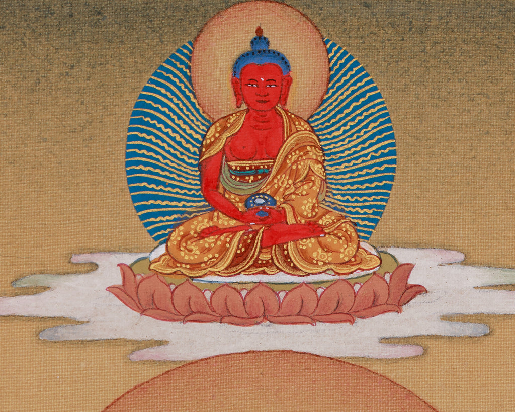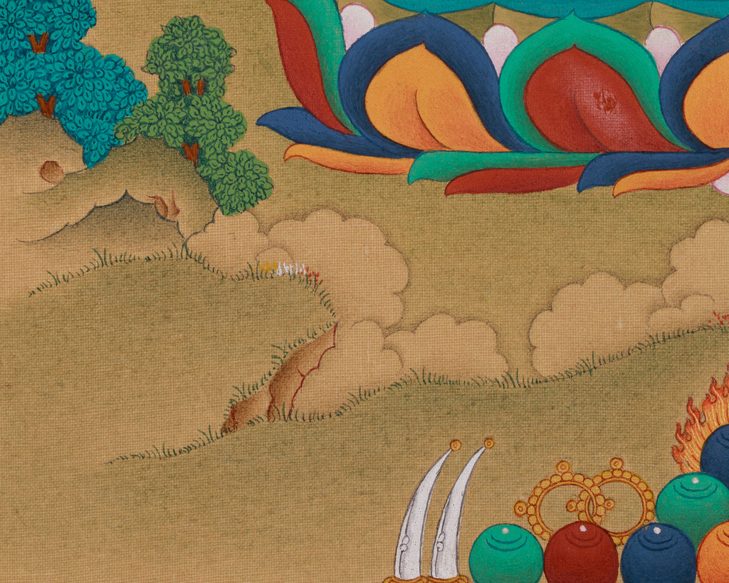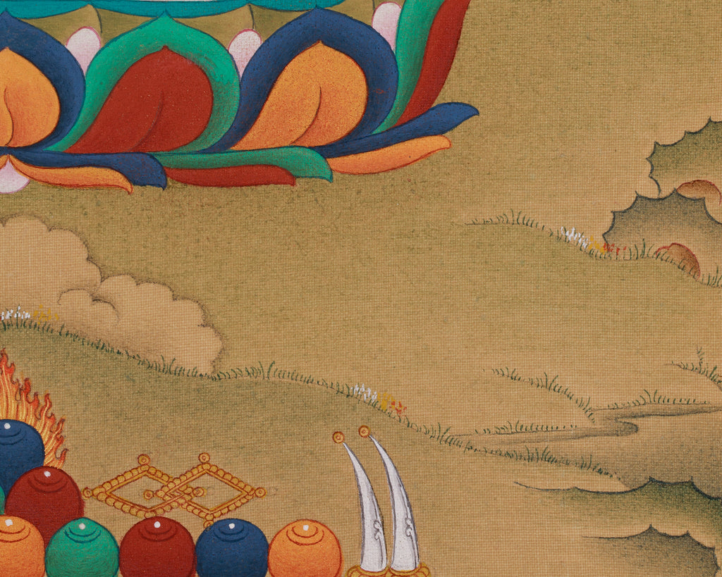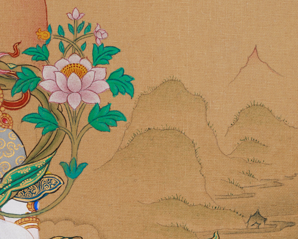 HAND-PAINTED WITH NATURAL LHASA STONE COLOR AND GENUINE 24K GOLD IN TRADITIONAL KARMA GADRI STYLE