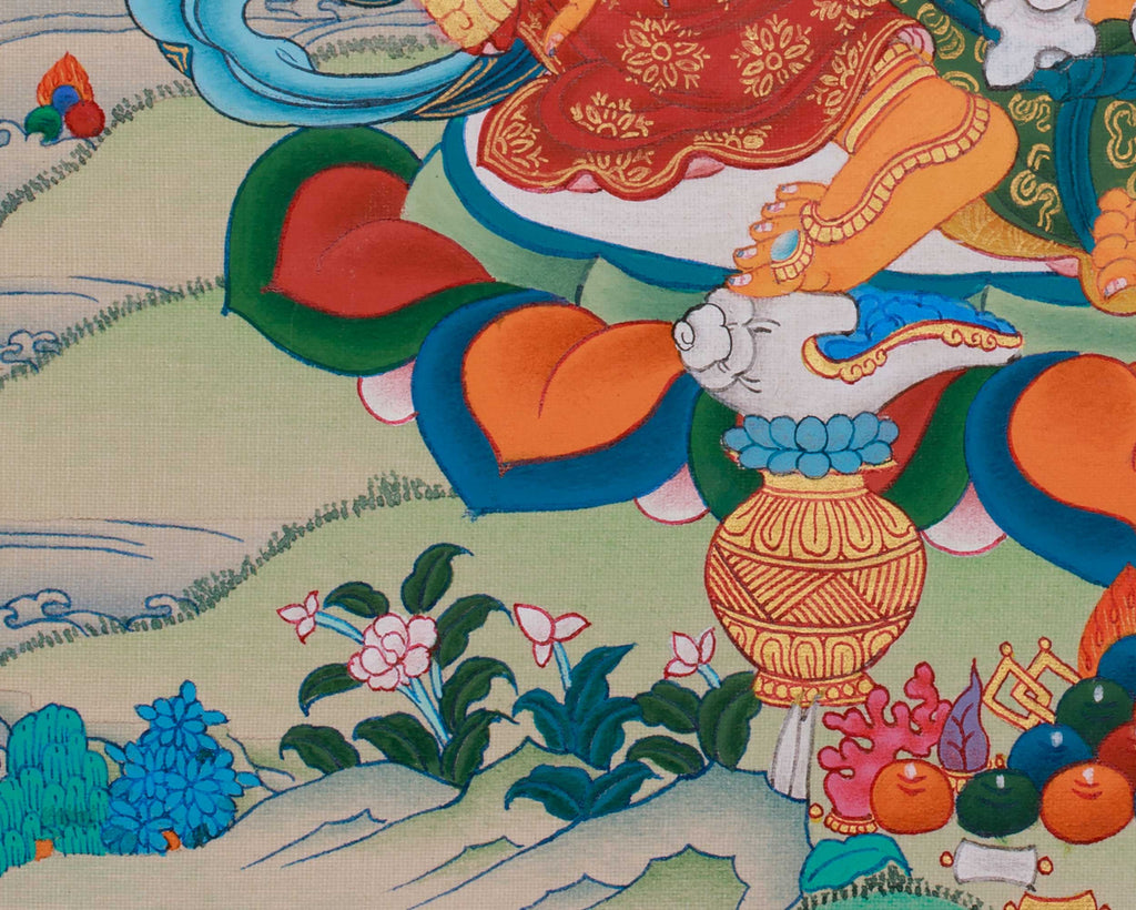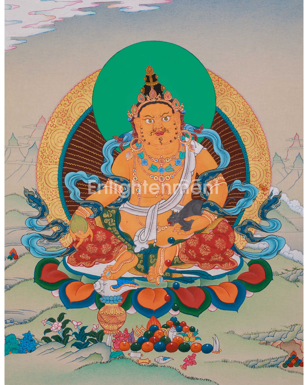 Invite the blessings of Dzambhala into your life—order this beautiful thangka today and welcome prosperity and protection into your home.