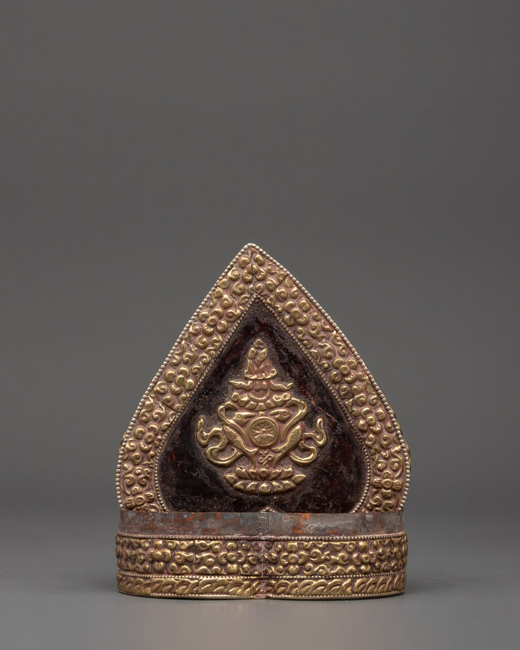 The delicate craftsmanship honors Tibetan and Himalayan artistic traditions, making it an ideal complement to altars, meditation rooms, or spiritual home decor. This handmade storage box exemplifies spiritual dedication and tradition, whether used as a symbolic contribution box, an attractive keepsake, or a collector's item. Its distinctive shape and complex design make it an excellent gift for Buddhist practitioners, collectors, or anybody looking for a meaningful decorative piece.