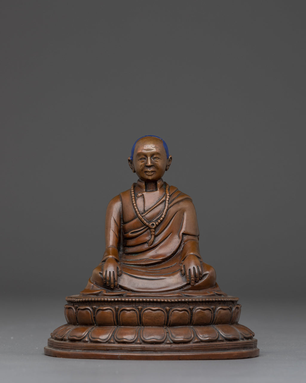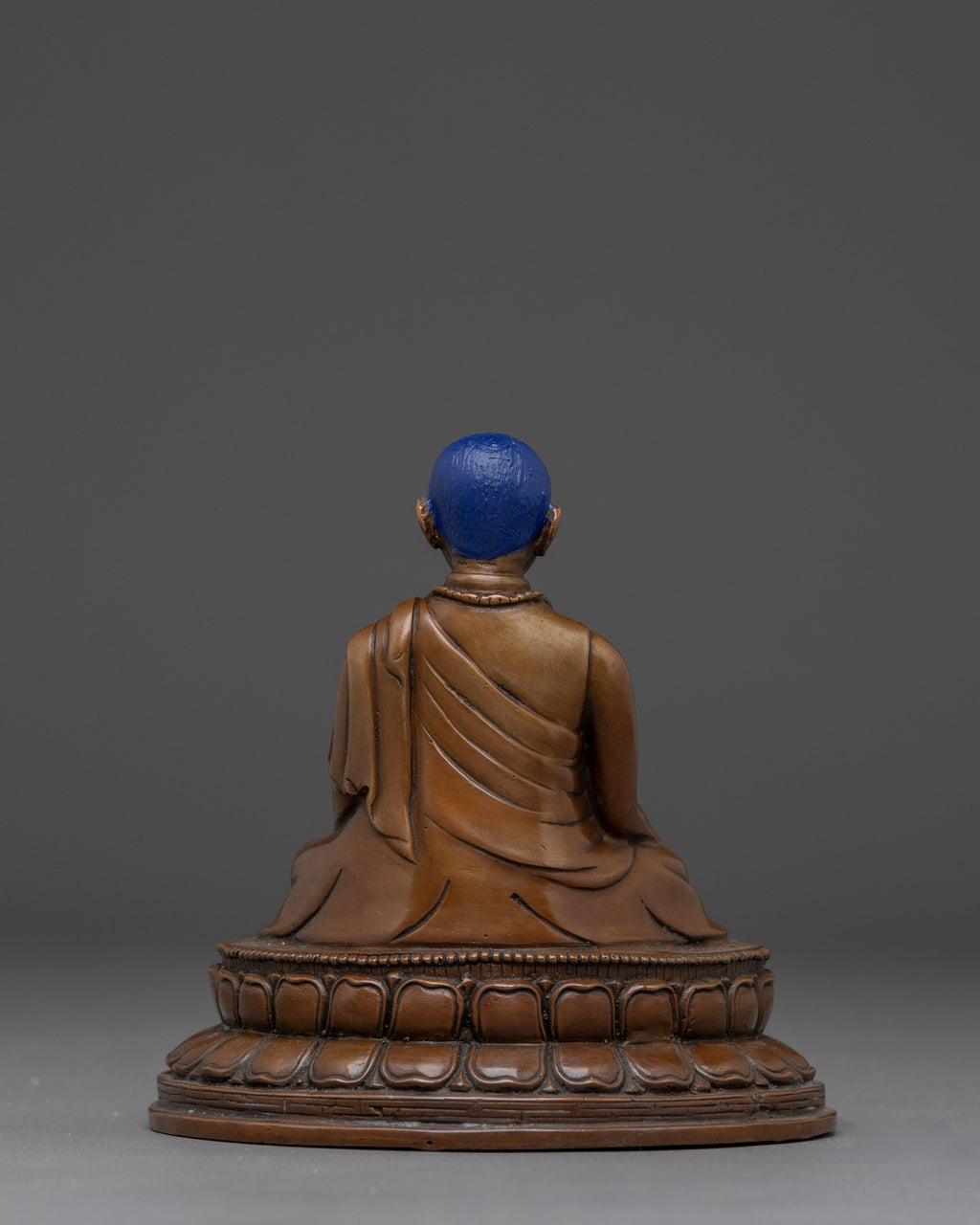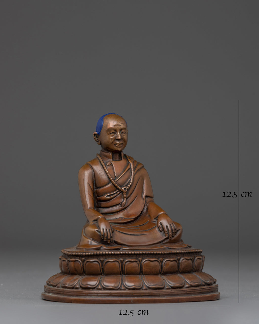 Tulku Urgyen Rinpoche, Tibetan Meditation Guru, stands 4.9 inches (12.5 cm) tall with a matching 4.9-inch (12.5 cm) broad base and weighs 0.69 kilograms. Made from an oxidized copper body, it features a rich antique finish that highlights its fine detailing and traditional Himalayan artistry. Perfect for personal altars, travel shrines, or small meditation spaces, this piece offers a subtle yet powerful spiritual presence.