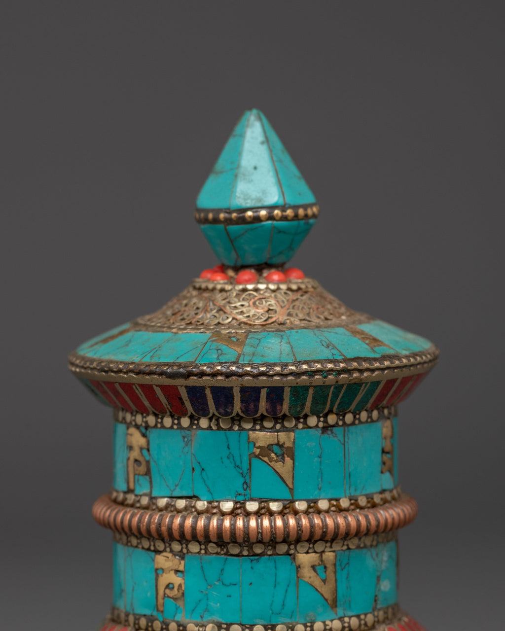 Perfect for spiritual seekers, mindful decorators, and collectors of Tibetan art, this Turquoise Prayer Wheel serves as both a spiritual object and a stunning centerpiece. Discover how its vibrant colors and cultural symbolism enrich meditation, elevate home décor, and inspire peace and positivity. It is a meaningful addition for anyone drawn to Buddhist art, Himalayan culture, and spiritual meditation décor.