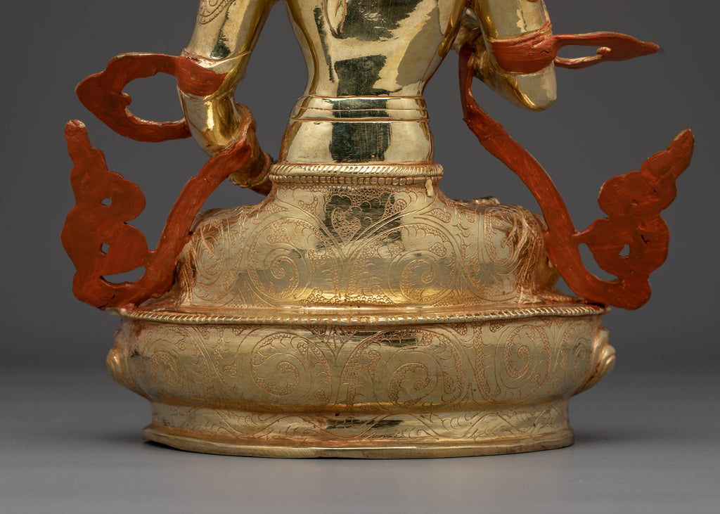 This Buddhist Ultimate Purifier Vajrasattva Handcrafted Statue stands at 13.4”/34cm in height and 9.3”/23.5cm at the base, weighing 3.01 kg. Crafted from copper and richly adorned with 24K gold gilding, gold, and acrylic paintings, this statue reflects the expert workmanship of skilled Nepali artisans. Its detailed design and radiant finish make it a distinguished piece for altars, meditation spaces, or spiritual collections, embodying purity and transformation in Buddhist practice.