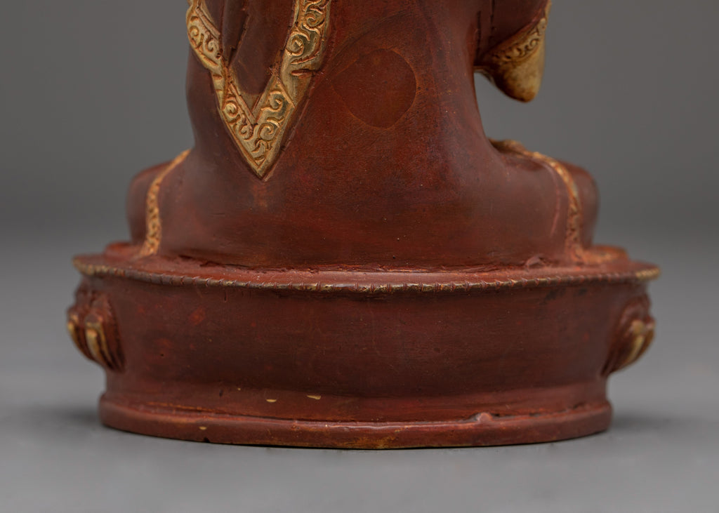 Vairocana embodies Buddhism’s deepest reflection on emptiness and the interconnectedness of all things in the universe, known as the dharmadhātu. Seated gracefully on a lotus throne, his hands form the Dharmachakra mudra, symbolizing the turning of the wheel of Dharma. This statue is a thoughtful gift to inspire and support your Buddhist practice, crafted with care and intention by our skilled artisans who infused it with mindful creativity.